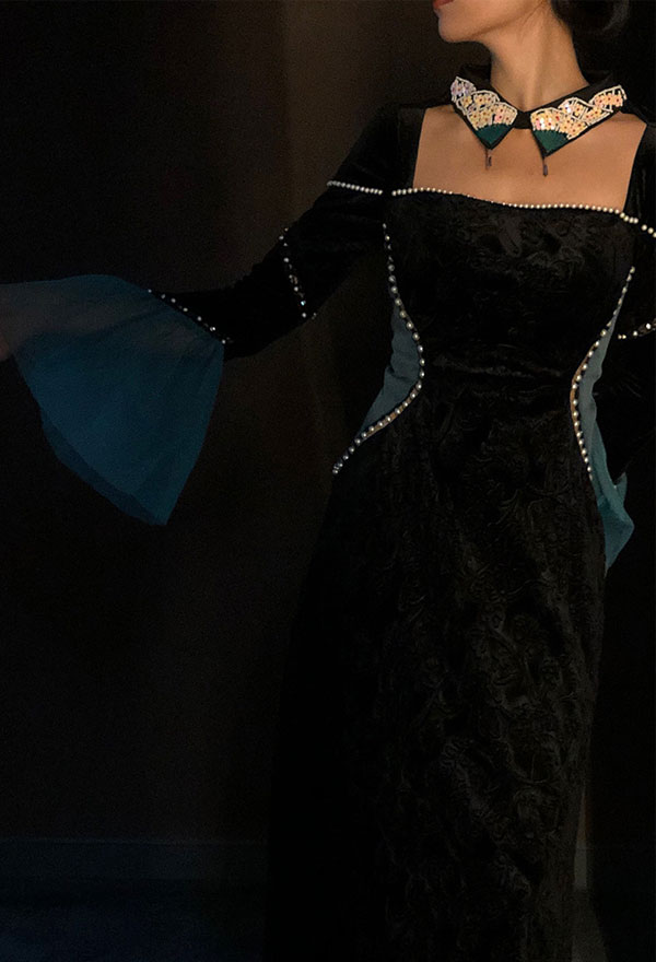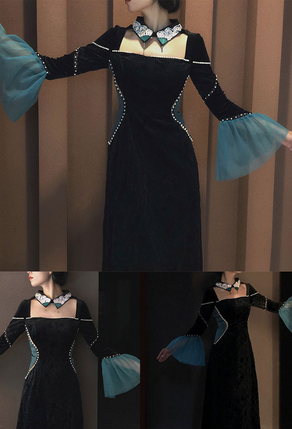 Costume Includes: dress, fake collar*1. Material: polyester, spandex.