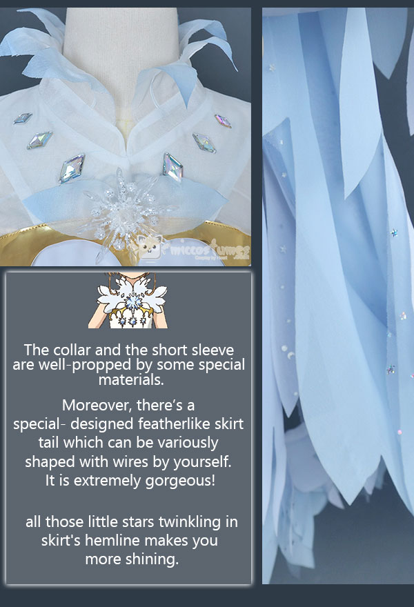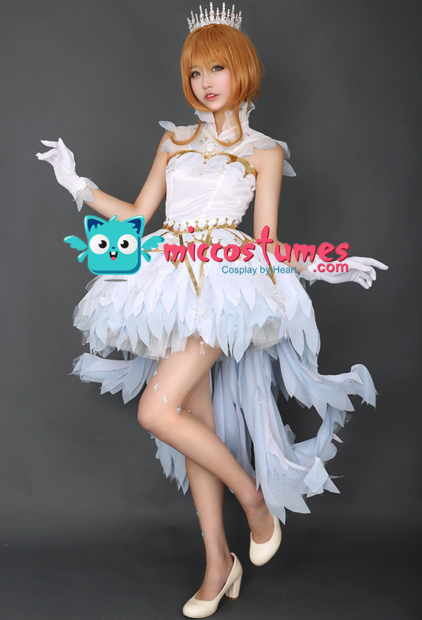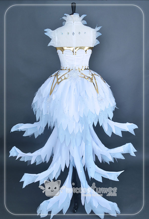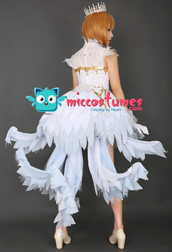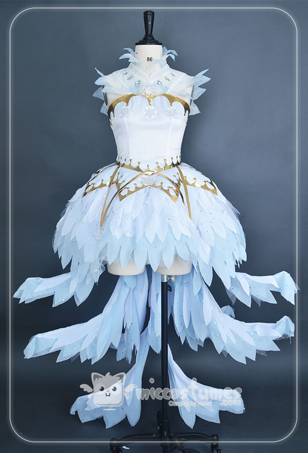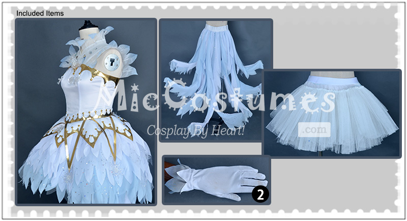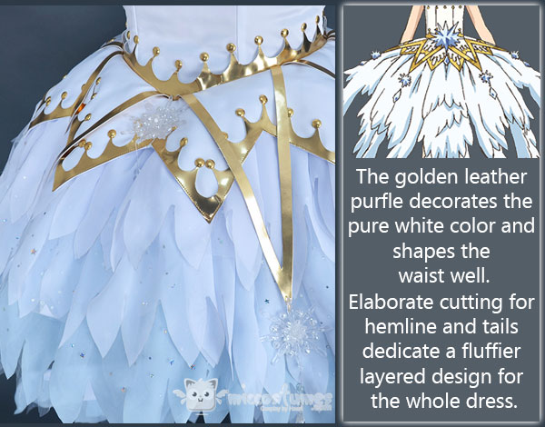 This costume includes dress, glove×2, tail, petticoat. It is made of chiffon, PU leather, satin, gauze.