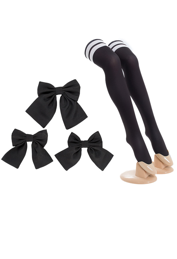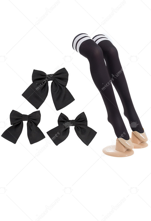 This costume includes dress, shorts, petticoat, socks, bow accessories. It's made of knitted fabric.