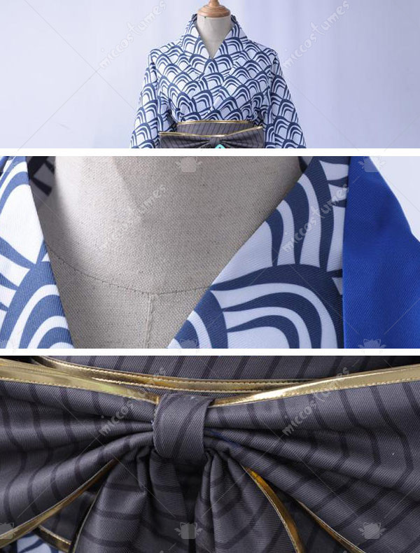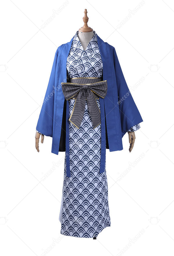 The costume includes coat, kimono, headwear, girdle. It is made of uniform cloth.