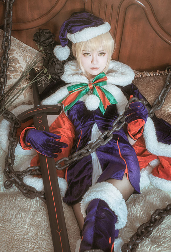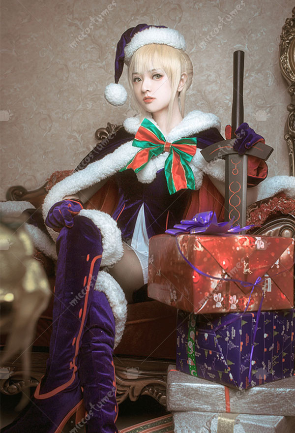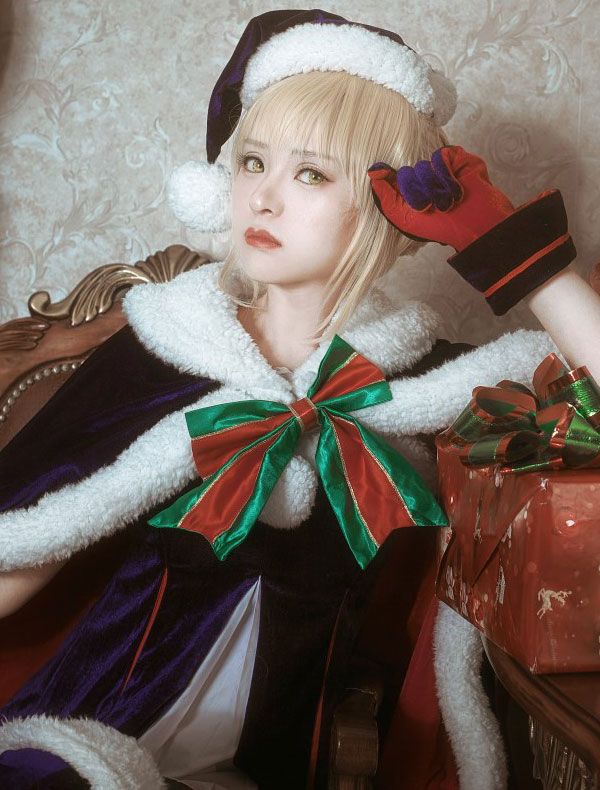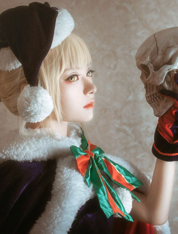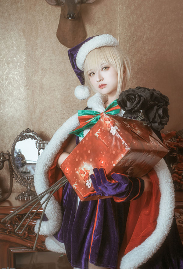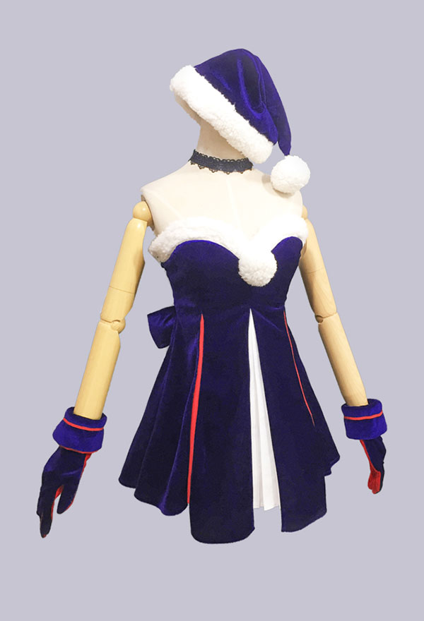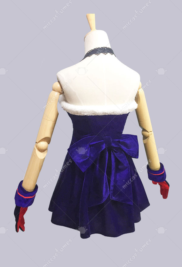 This costume includes cloak, hat, skirt, necklace, bowknot accessories×3, gloves, shoe covers. It is made of the thick velvet with a fluffy texture, which feels very soft.