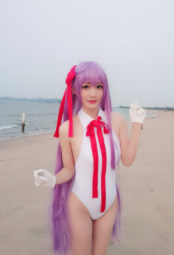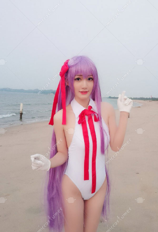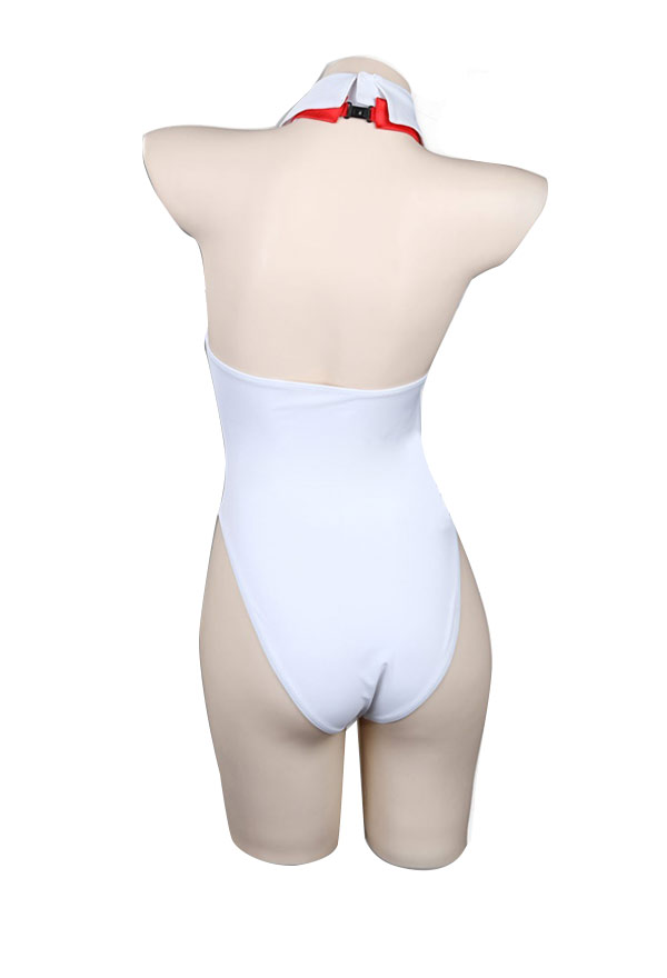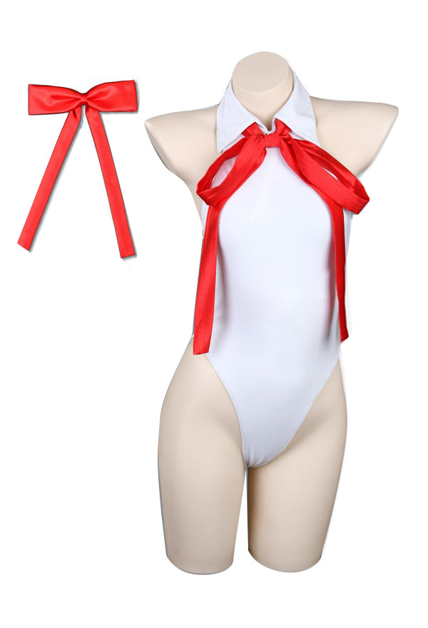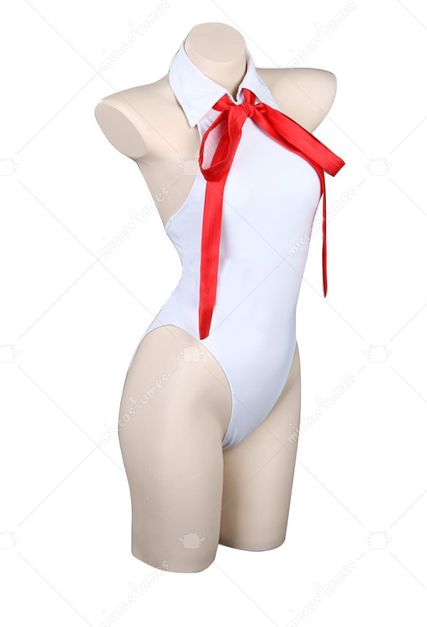 The costume includes hair clip, swimsuit, bow tie. It is made of chinlon. It has chest pad.
