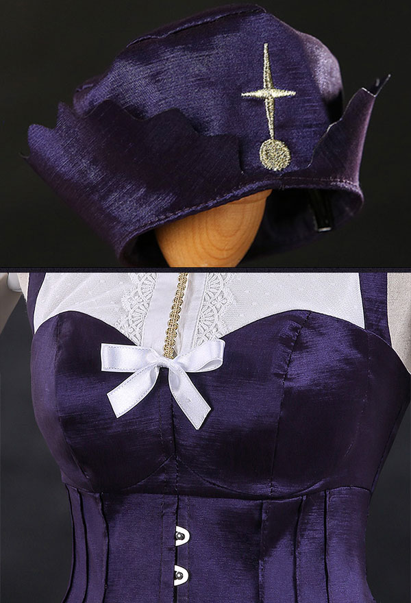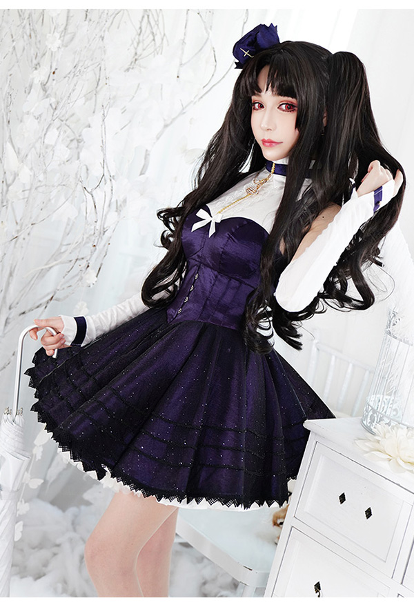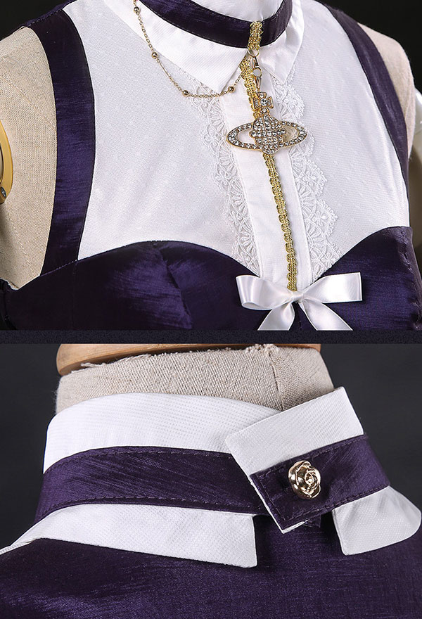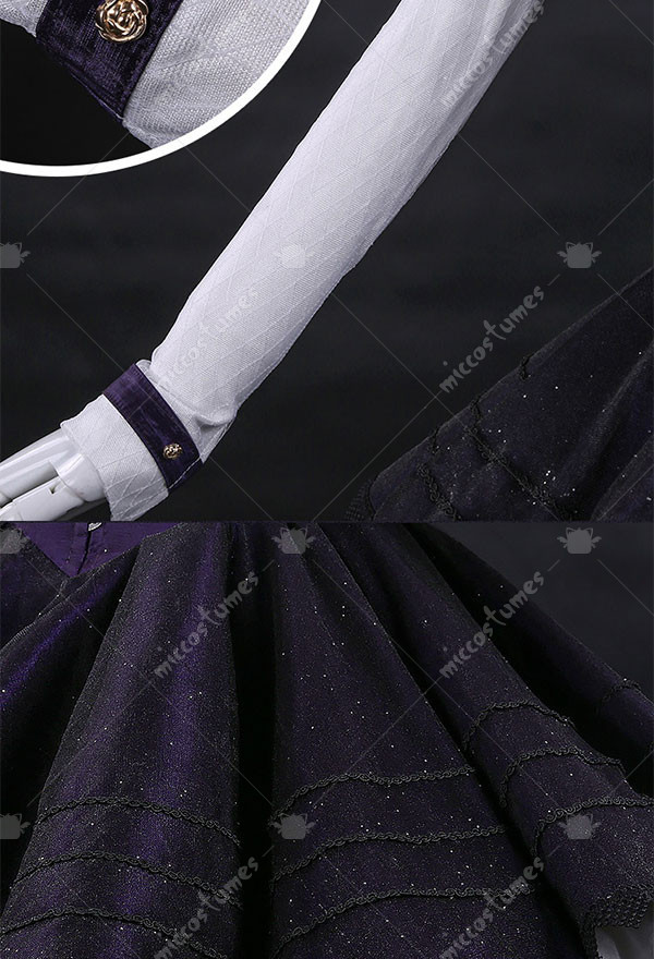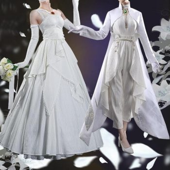 The costume includes dress, hair accessory, ear accessory, neck accessory, and gloves*2. It is made of elastic silk, fluorescent satin and yarn.