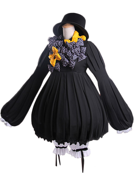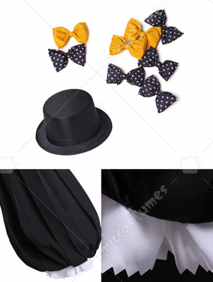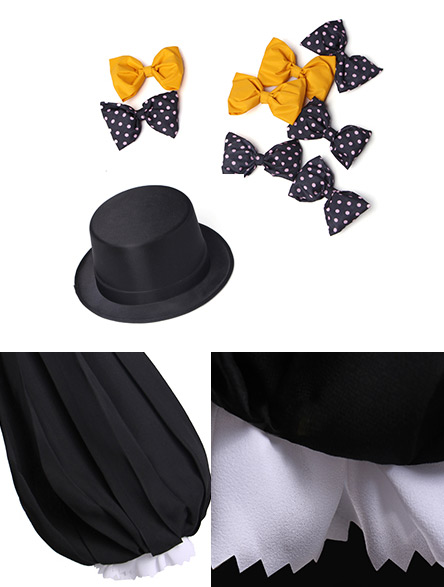 The costume includes dress, shorts, hat, bowknot. It is made of polyester.