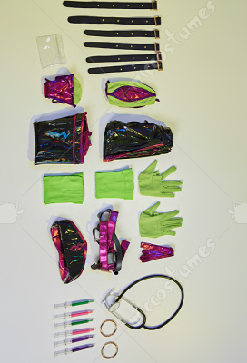 | Included Items | top, skirt, bra, thong, gloves*2, stockings*2, belt, stethoscope prop, syringe props*6, bracelets*6, metal rings*2, transparent card holder, hair band |