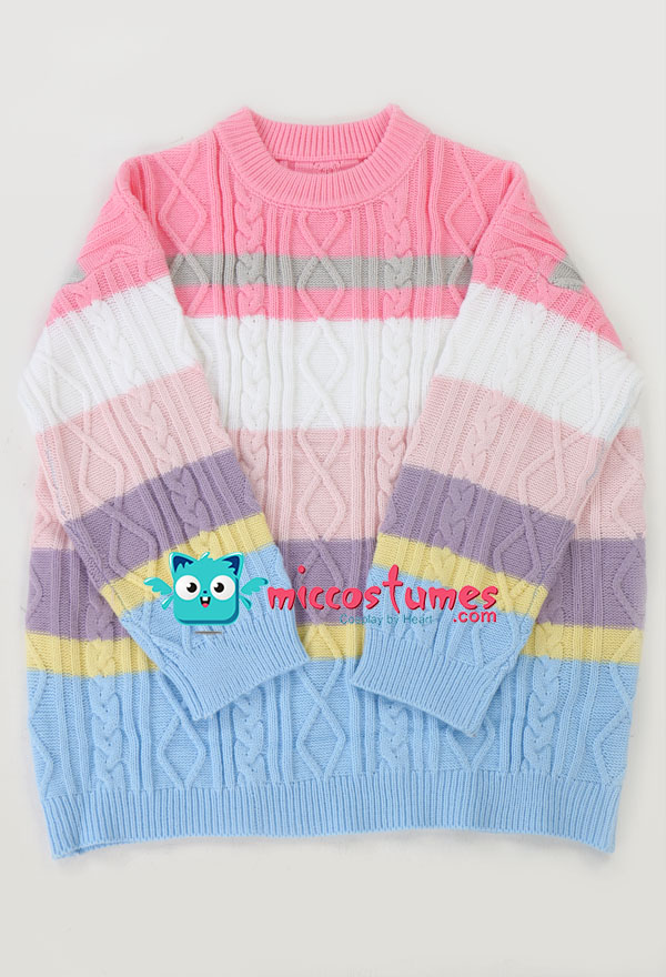 Design Detail: Knitted by yarn of seven colors, the sweater reconstructs the shape and pattern in card as much as possible. Furry hat and gloves keep you warm in autumn and winter. Please notice that badges, hat and scarf are not included in this product.