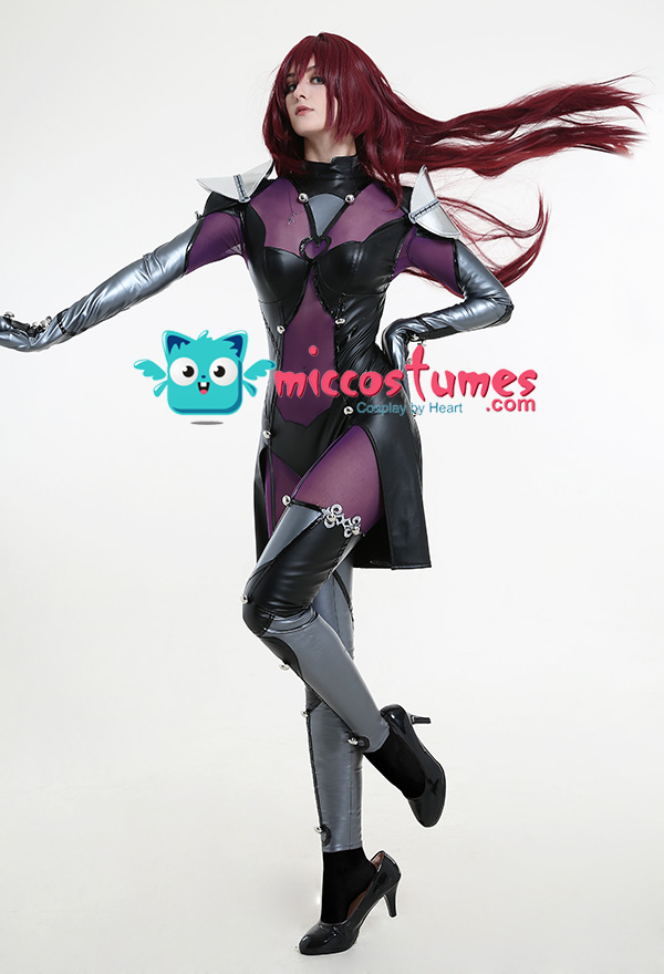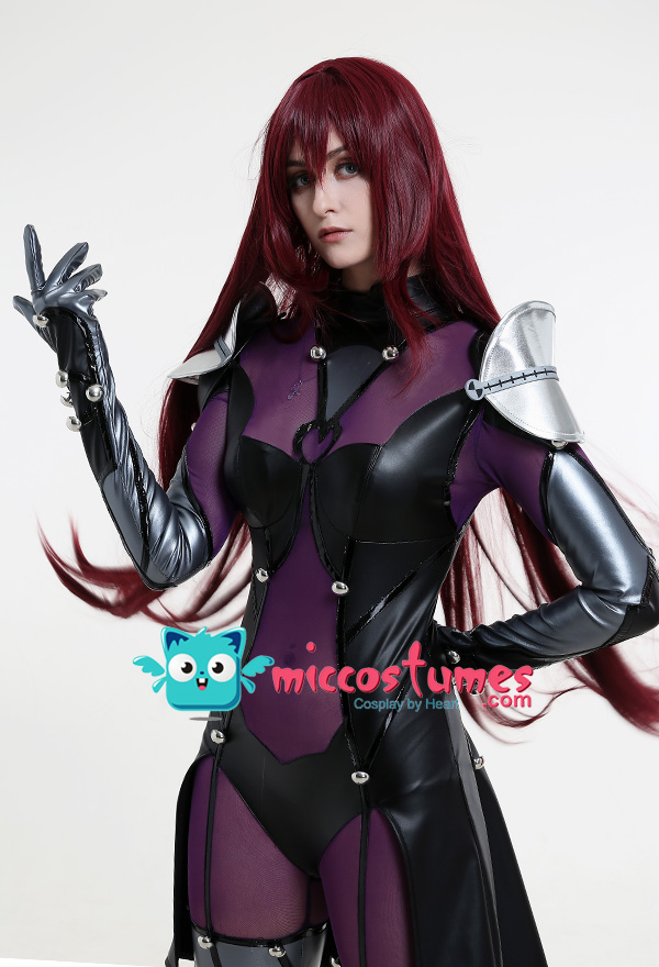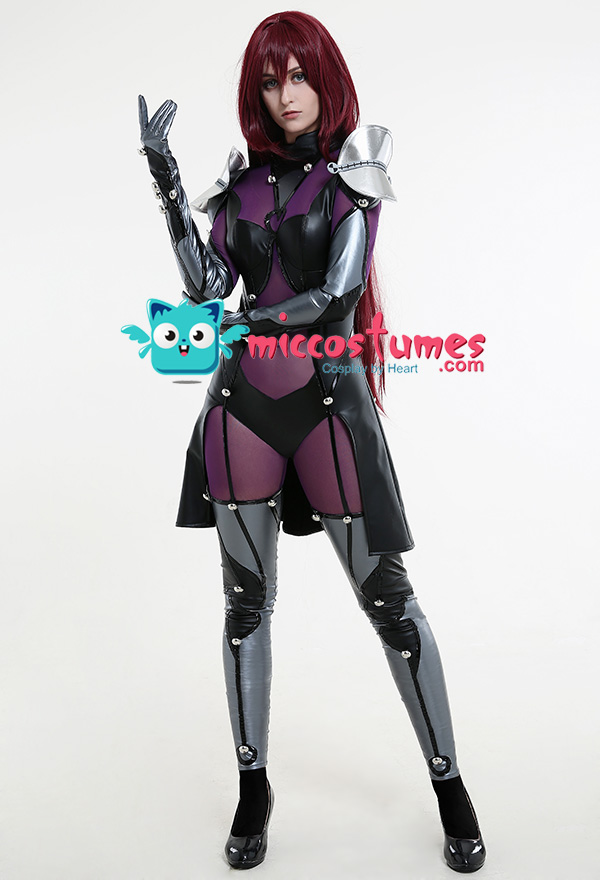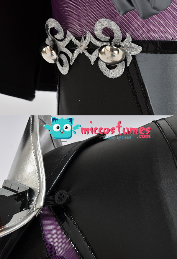 - Design details: The stitching of silver gray and black elastic leather is more metallic. Black bright leather is used as a decorative strip, which contrasts with the overall matte feeling of the clothes and has a richer layer. Customized props make the shoulder armor have a double-layer effect, making the characters more three-dimensional. The net yarn has high elasticity and can fit multiple body shapes. Thigh leather stitching is not very elastic, so please pay attention to the leg size.