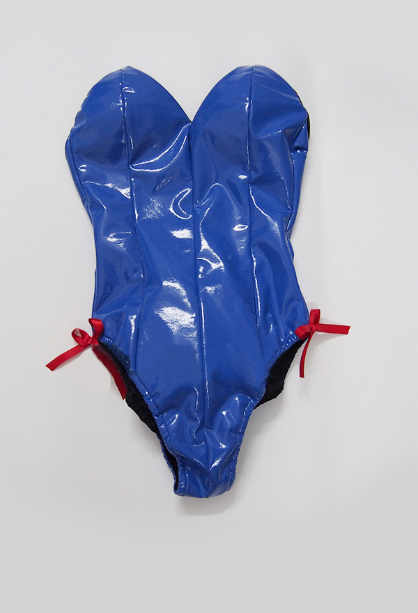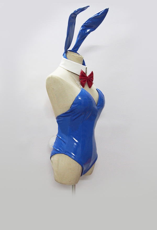 This costume includes see-through jumpsuit, collar, bracelet * 2, headband, bra strap * 2. It is made of patent leather.