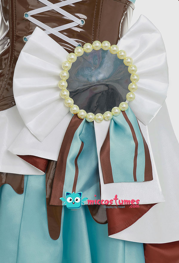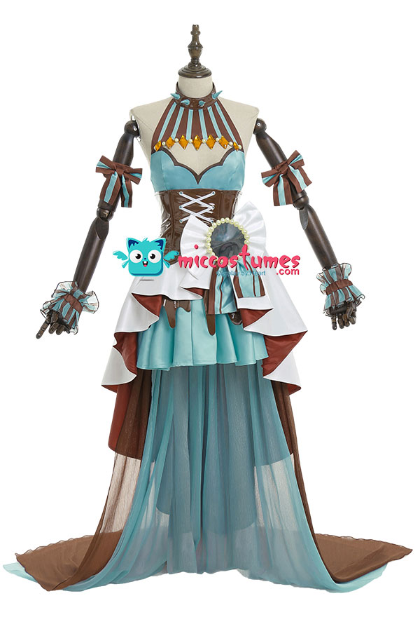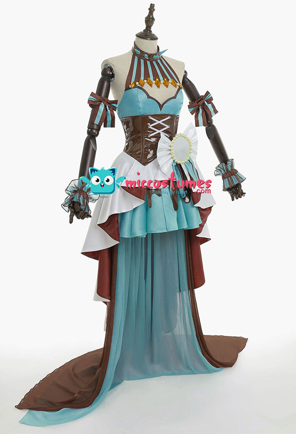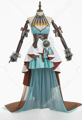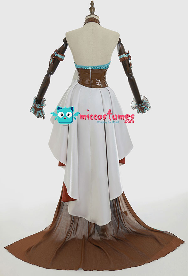 Design Detail: The selection of material strives to be in line with official figure as much as possible. The outer layer of dress is bouffant and luscious. Inner layer dress is elaborated as well, especially the top decoration. Two-layer tailing are definitely a highlight of the costume. It looks shiny and drapes like wings of butterfly.