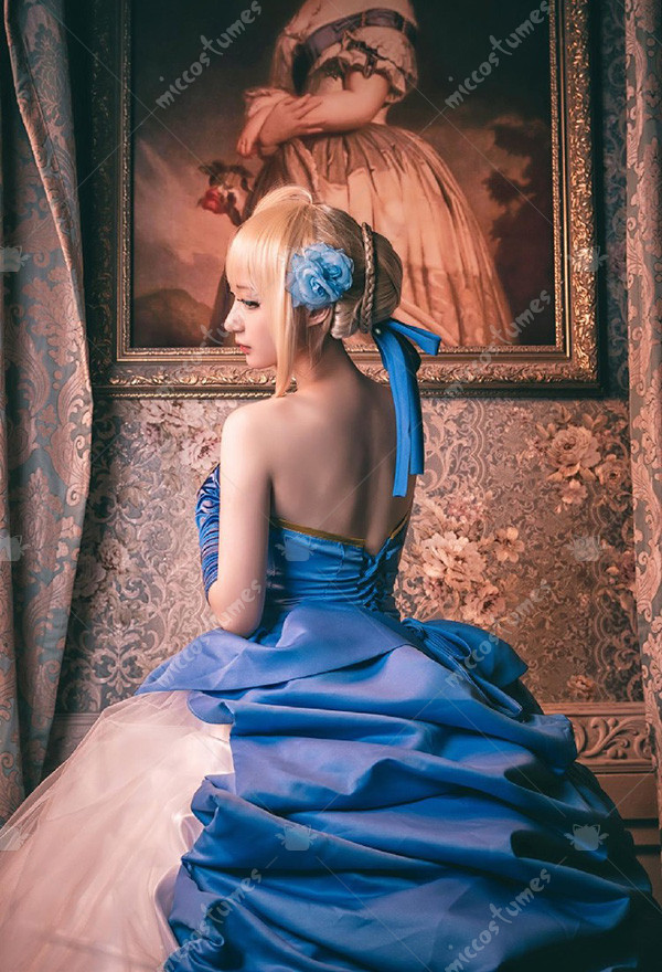 The costume includes dress, glove, headwear, bowknot. It is made of satin, gauze.