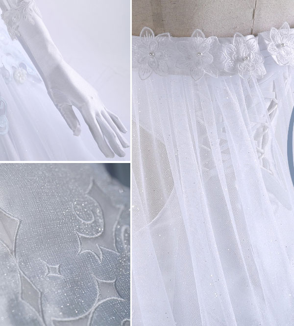 | Included Items | Dress, veil, headdress, gloves, necklace, earrings, straps |