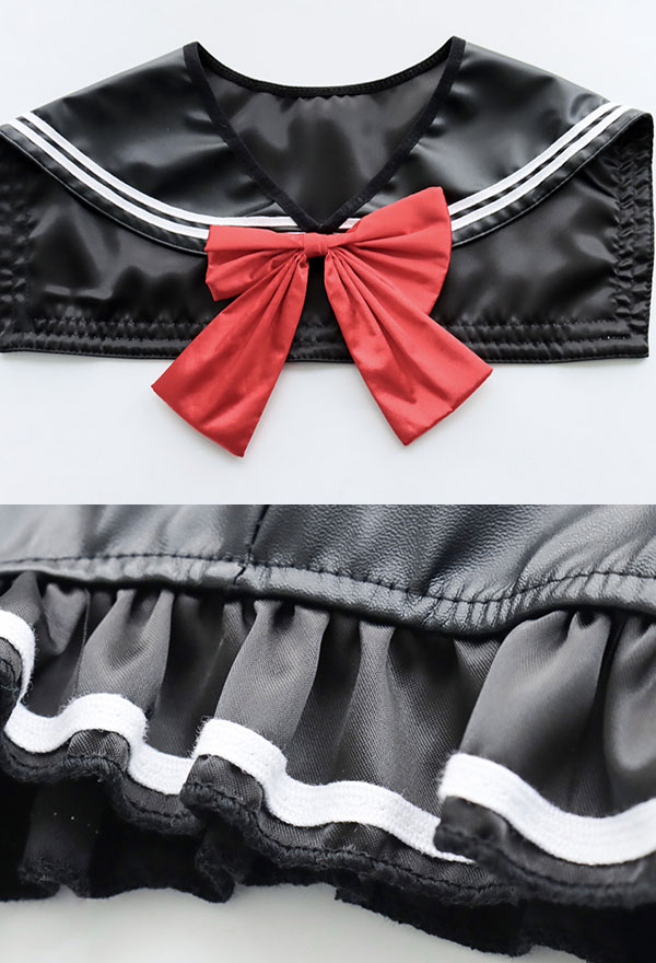 Costume Includes: bodysuit, sailor collar*1. Material: PU leather.