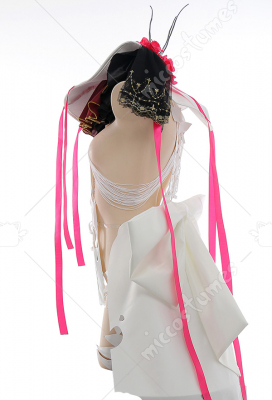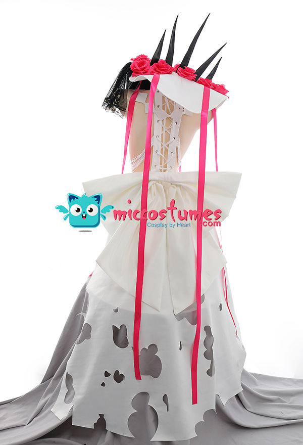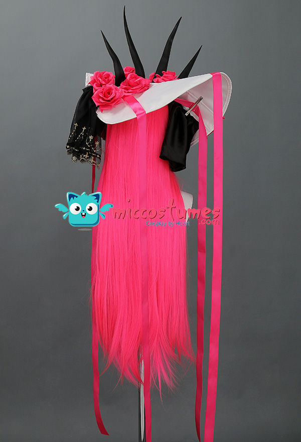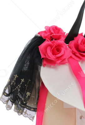 Design Details: The main fabric of this outfit is wedding satin, which is very beautiful and shiny. The hole design in the skirt is very similar to the character's costume. The hat is one of the biggest highlights of the whole outfit. There are many beautiful roses on the hat, very elegant and beautiful!