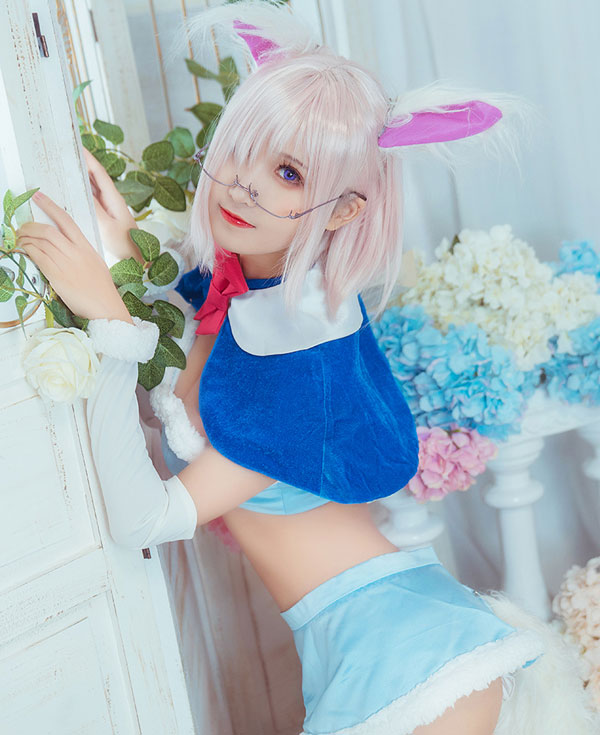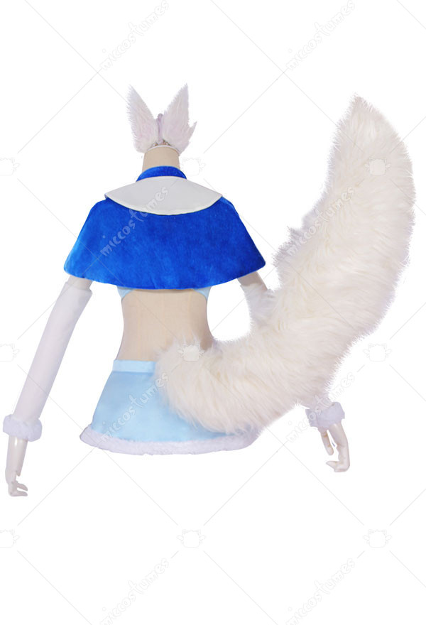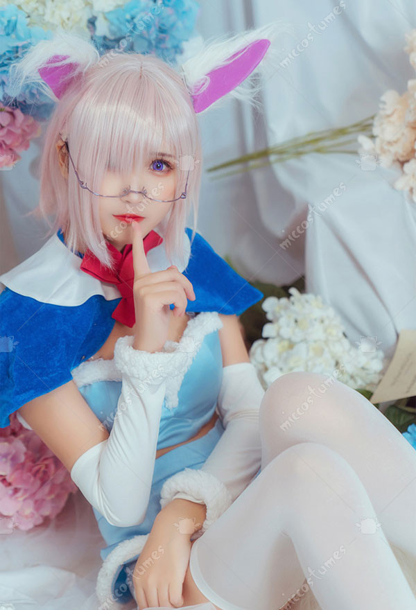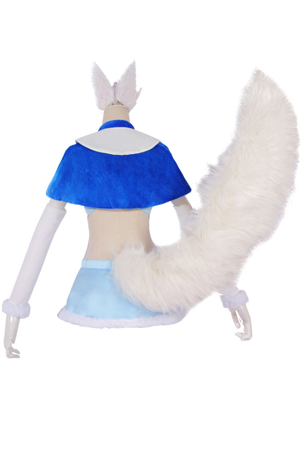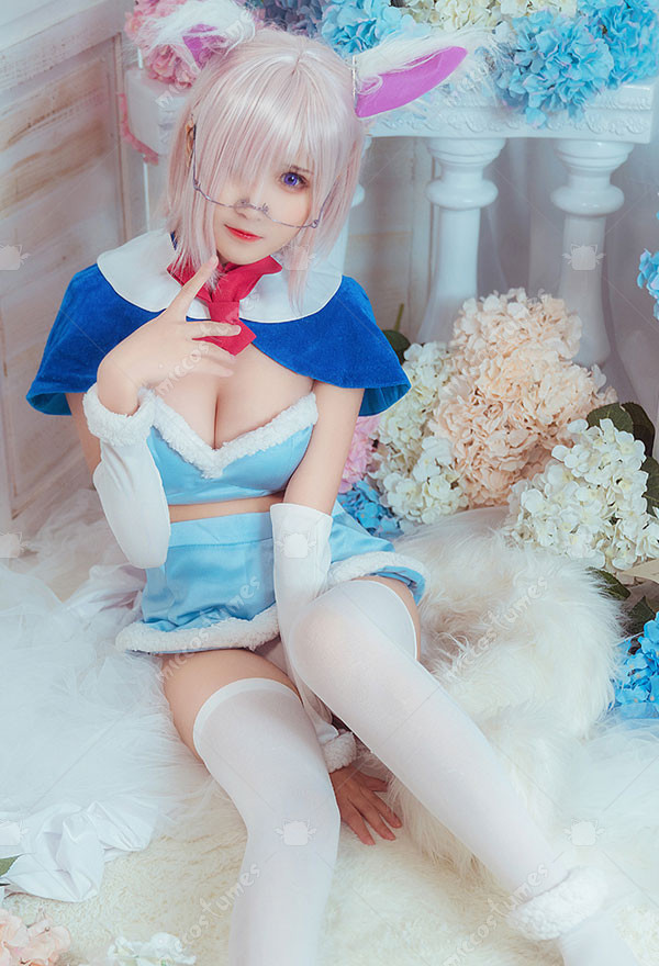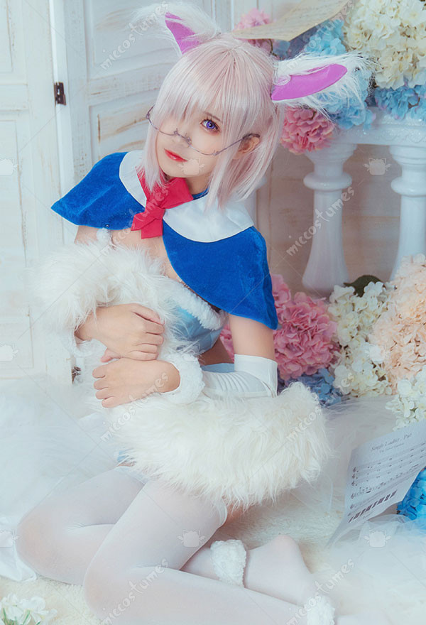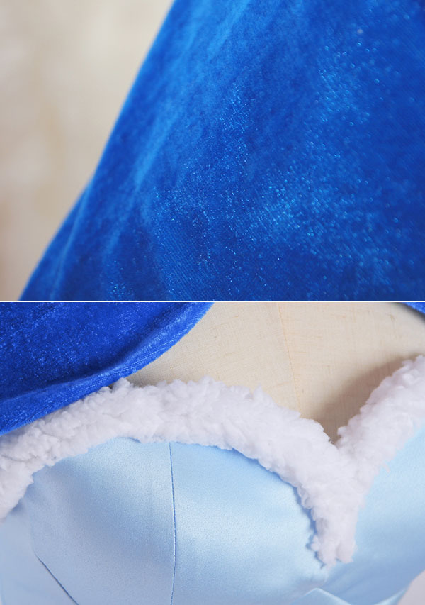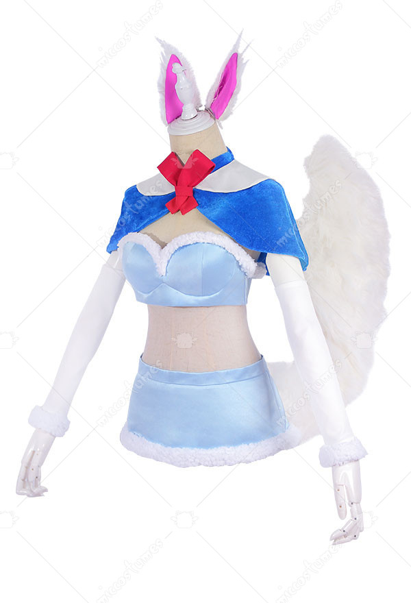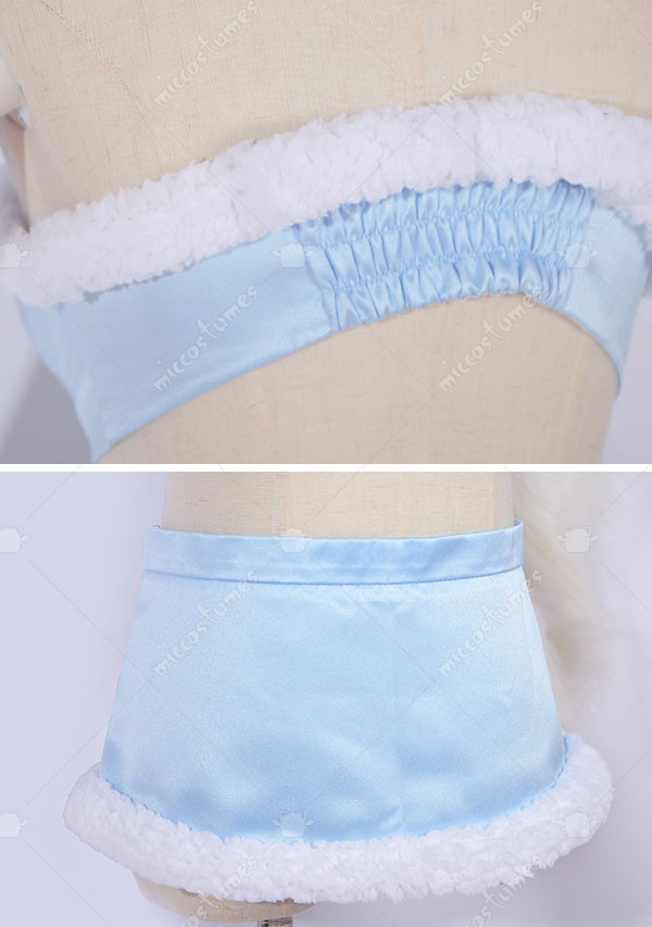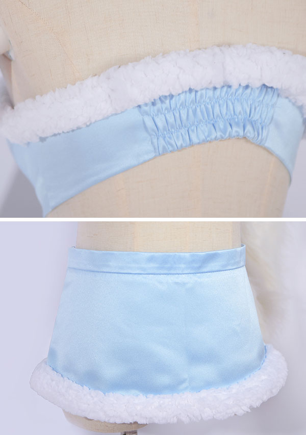 The costuem includes cape, tie, top, skirt, thigh ring*2, optical frame, sleeve*2, stocking*2. It is made of pleuche, satin. The tail and ears are sold separately.