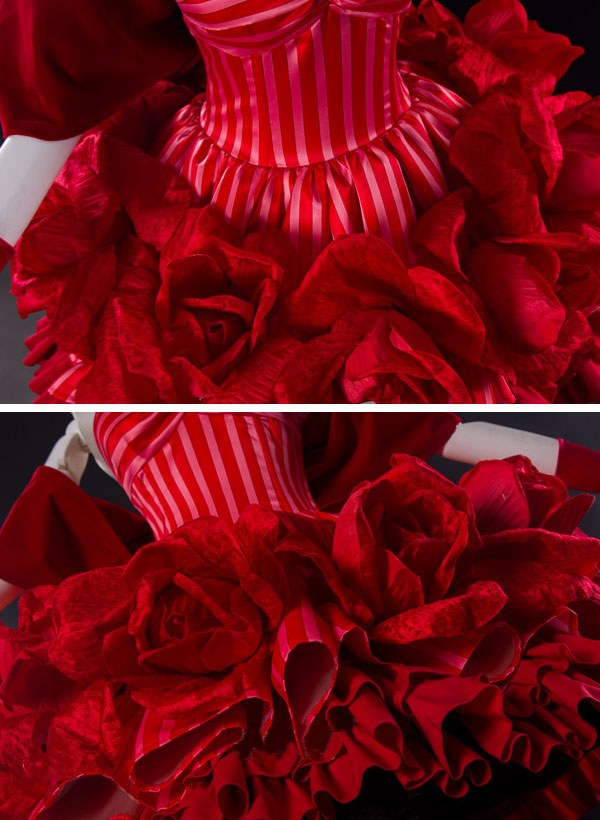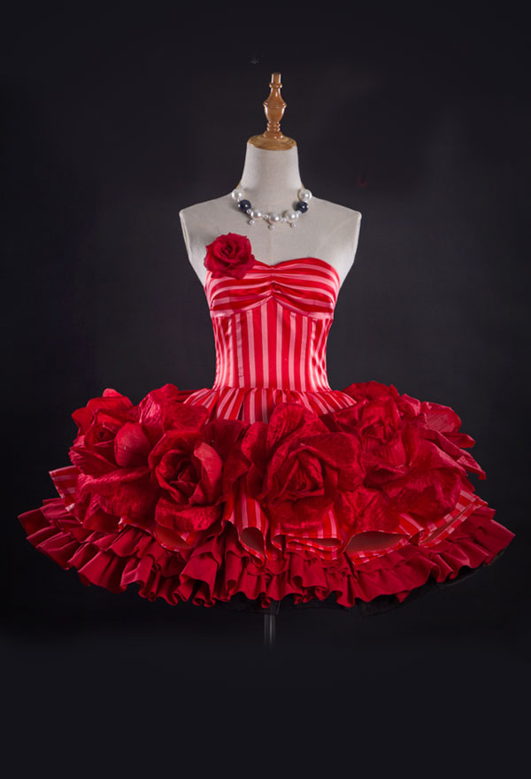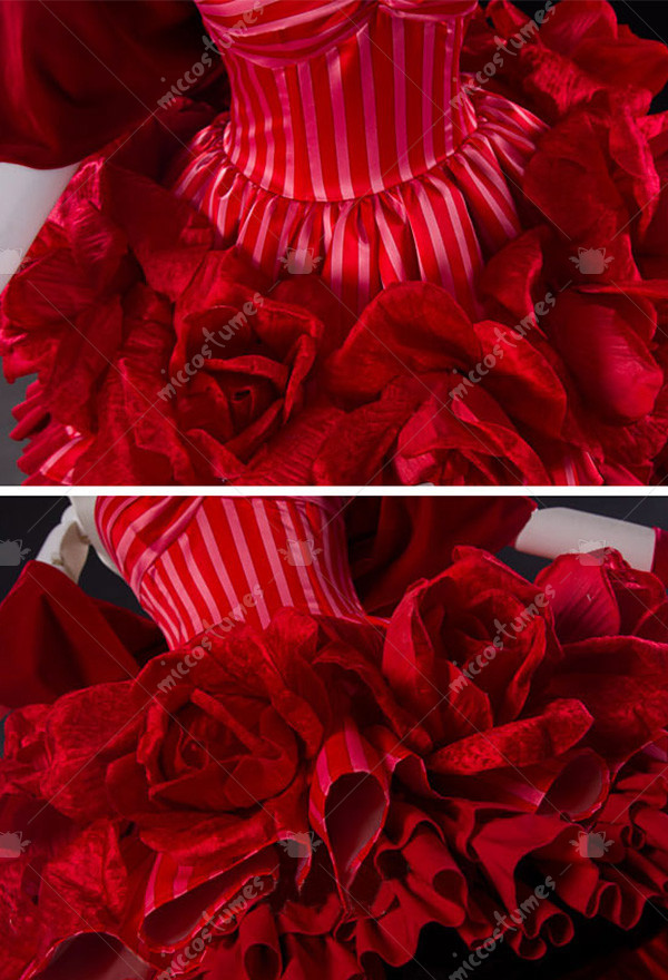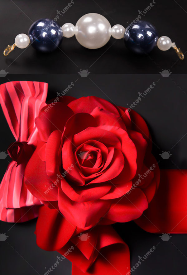 This costume includes dress, headdress, earrings, necklace, gloves, bowknot, corsage.