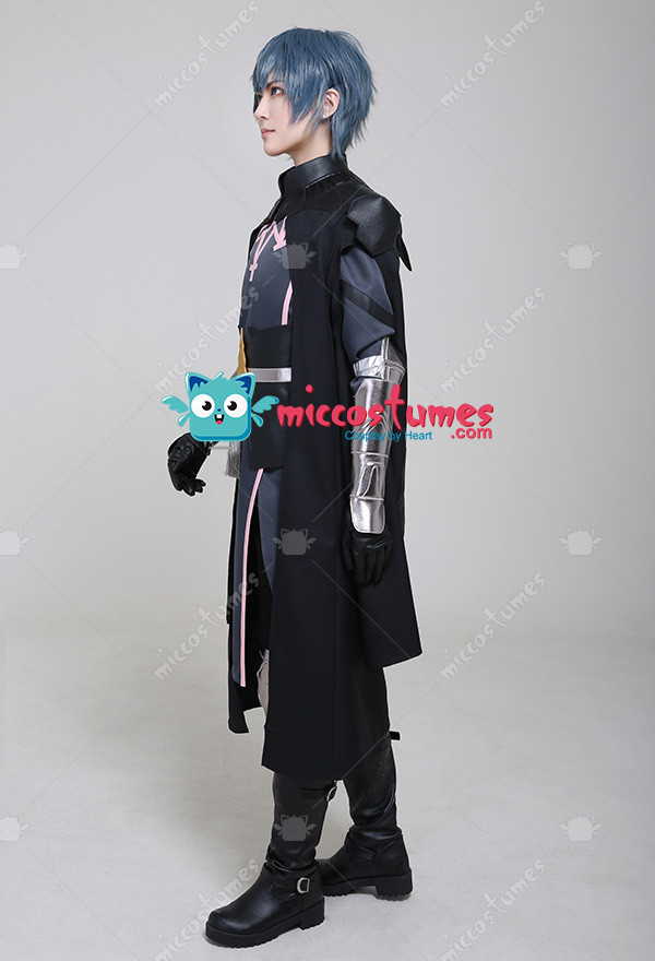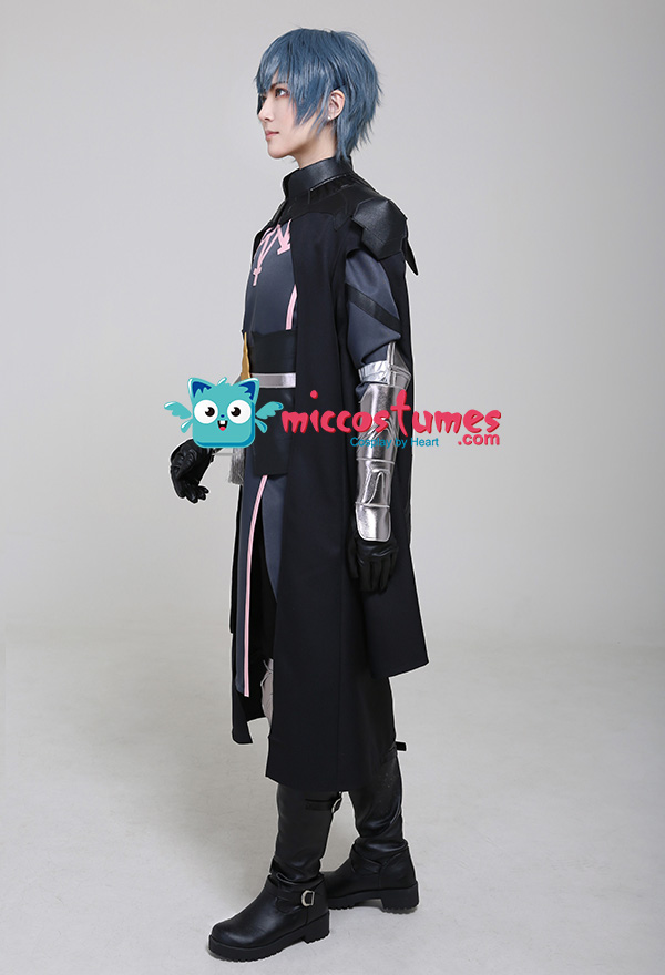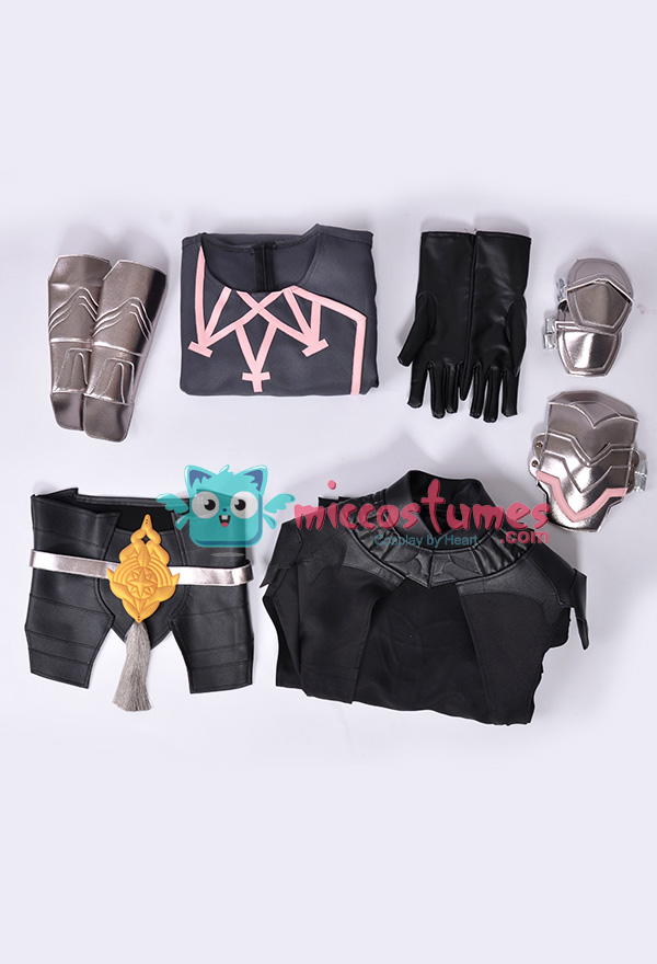 The costume includes base shirt, waistband, coat, gloves*2, armguard*2, kneecap*1, elbow guard*2. It is made of uniform cloth, spandex, PU leather, PVC, EVA.