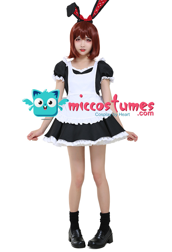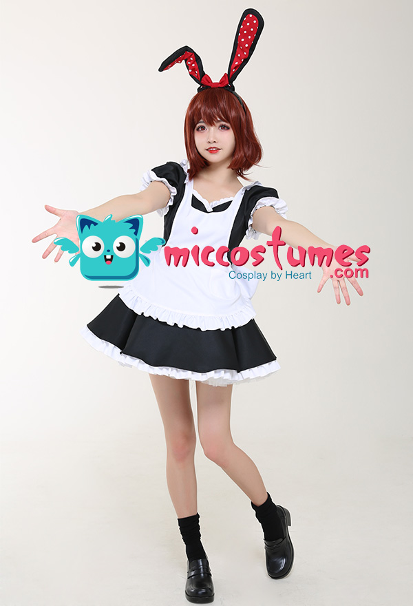 The costume includes dress, apron, headwear, petticoat, bowknot*1. It is made of uniform cloth, white lining fabric, white hard gauze.
