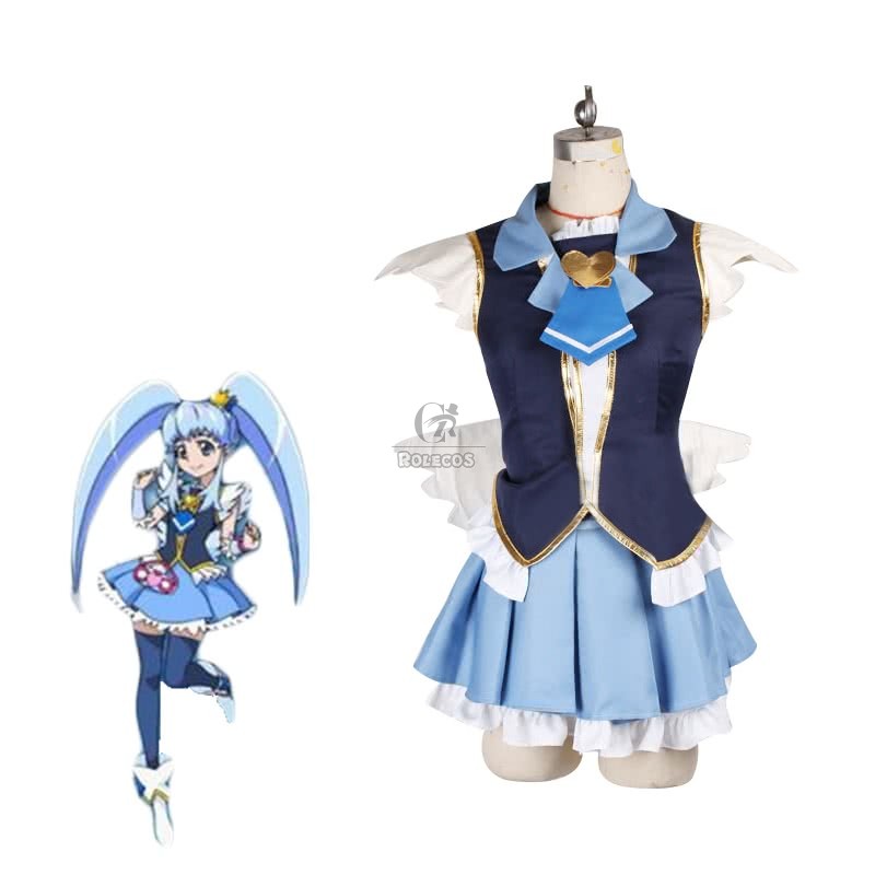 Character Introduction: She is the princess of the Blue Sky Kingdom, and is a rather spoiled fashion critic and victim. To save the Blue Sky Kingdom from being totally ruled by the evil organization of the Phantom Empire, she becomes a Pretty Cure, except she is easily scared and will immediately try to escape from danger in the middle of fights. Because of her shyness, she never had friends until meeting Aino Megumi. She is shown to have a wild imagination of sorts. In one instance, she imagines that Cure Lovely is splitting up the Happiness Charge Pretty Cure team in favor of a new partnership with Cure Fortune. She also imagines Yuko, who was taking care of Phantom, hugging Phantom romantically when she eavesdrops on the two.
