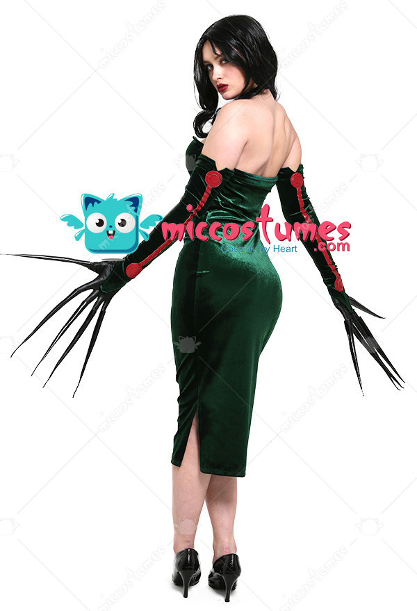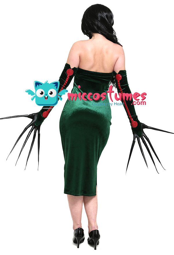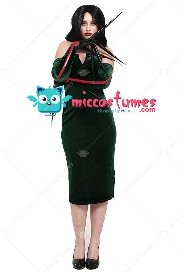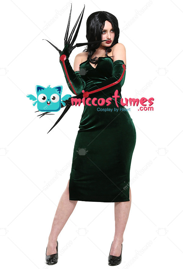 This costume includes the dress, gloves×2. It is made of PU leather, pleuche.