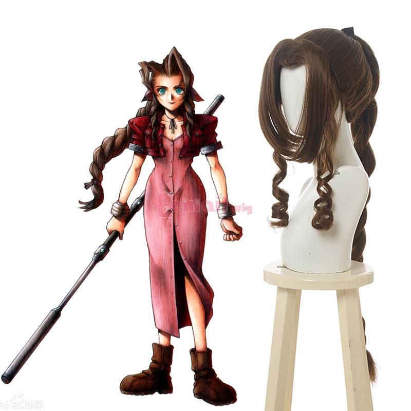 Game Final Fantasy VII Aerith Gainsborough Cosplay Wigs Brown Long Curly