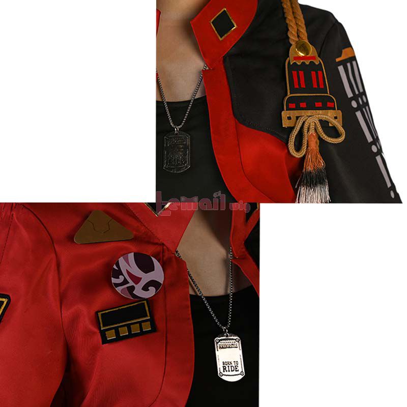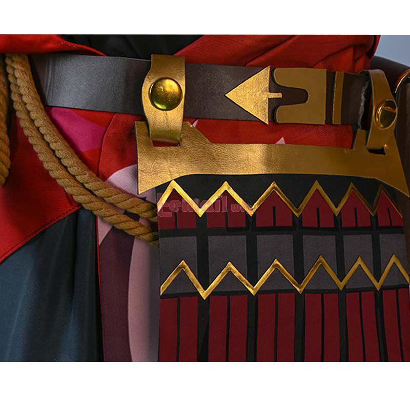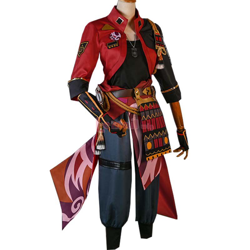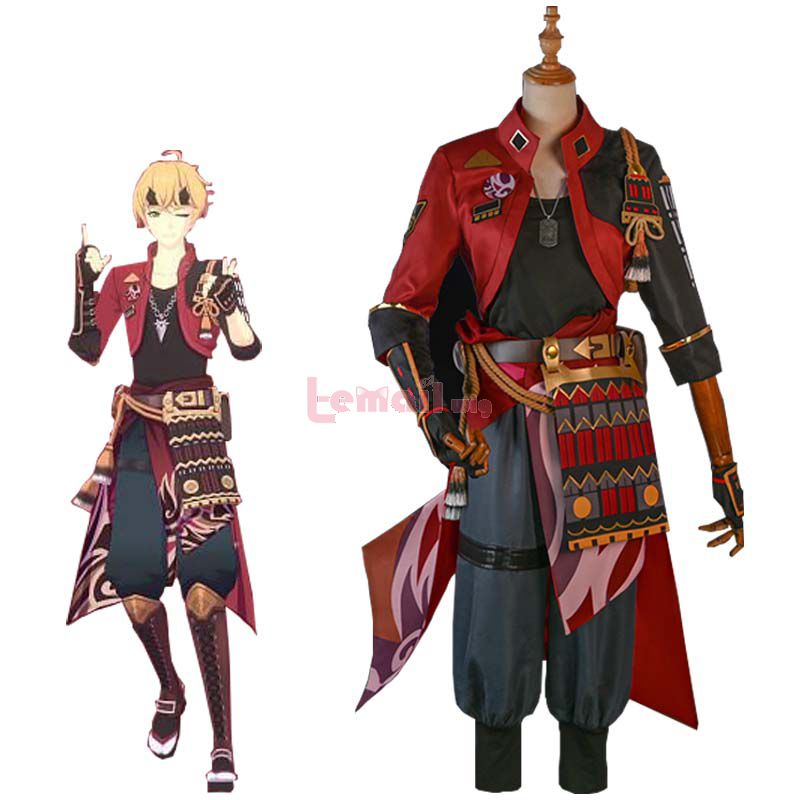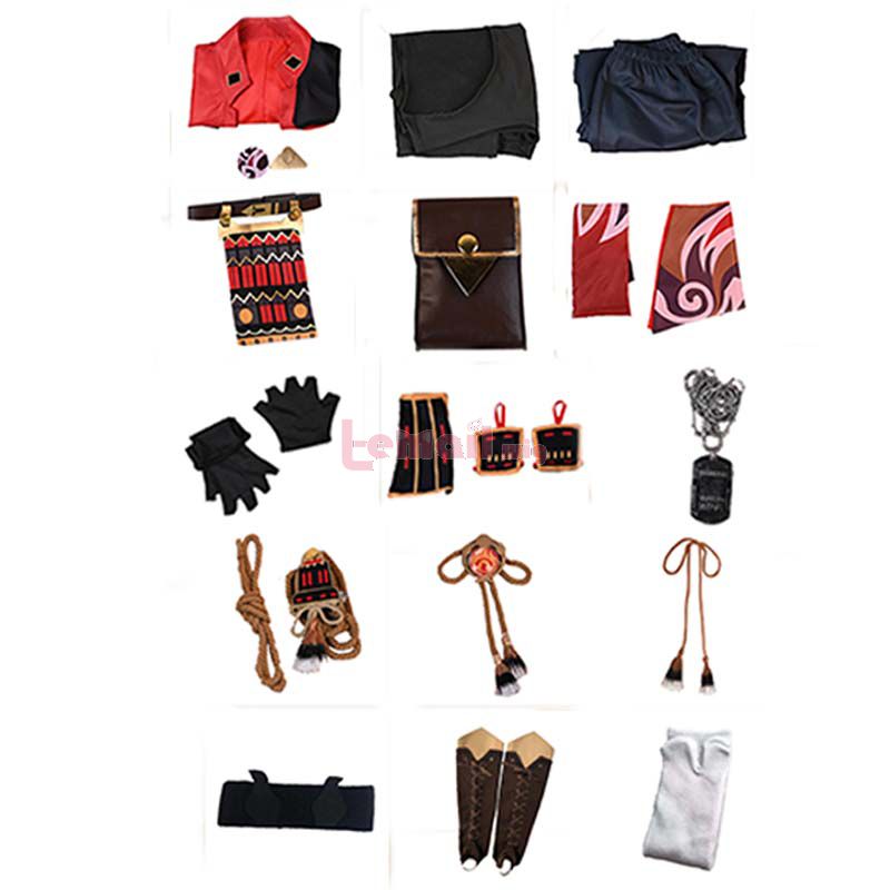 Included: coat, T-shirt, pants, belt, belt bag, gloves, armor, necklaces, accessories, headwear, leg covers, tabi