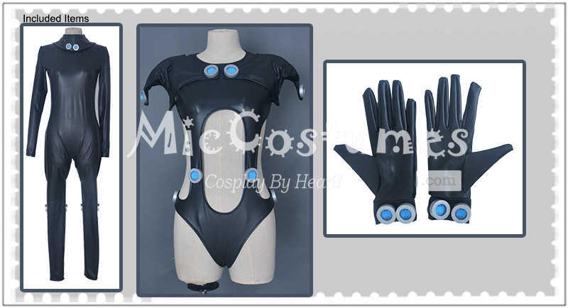 Please understand that some parts of the accessories are different from the images. There may be some minor alterations. This costume includes jumpsuit, jacket, gloves×2, bracelets×2. It is made of PU leather.