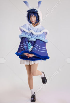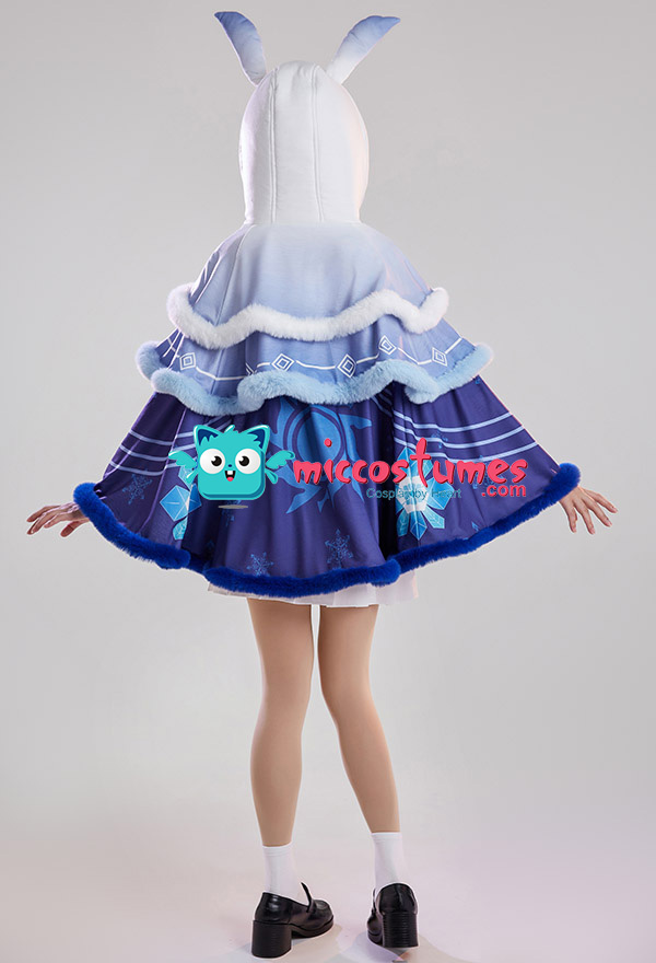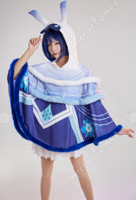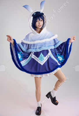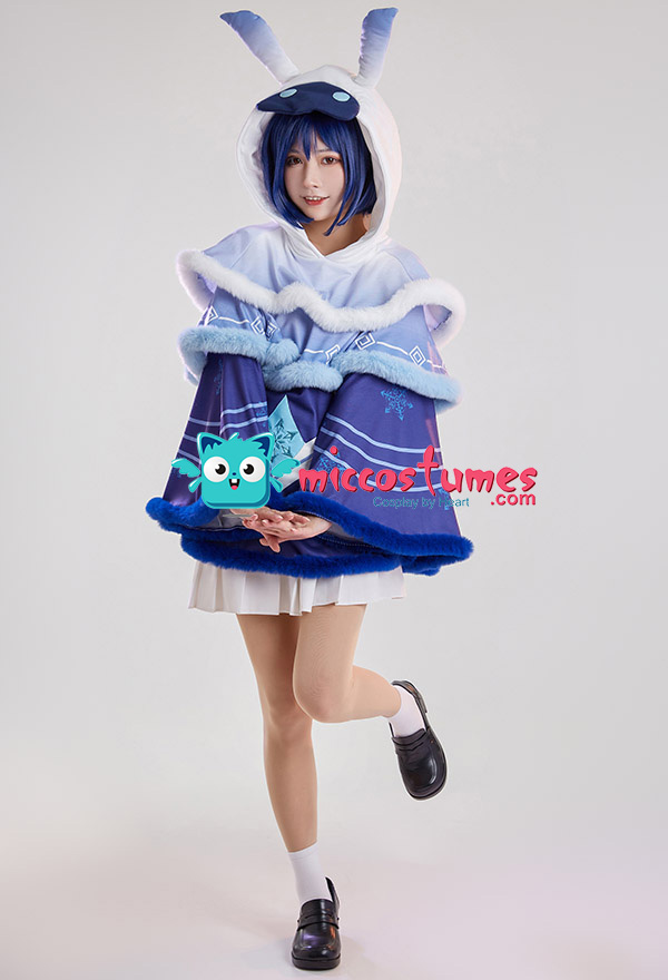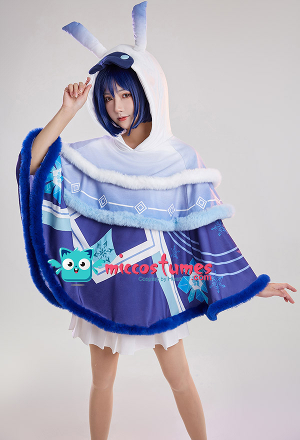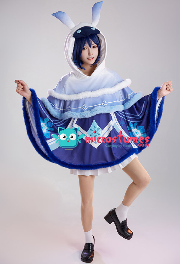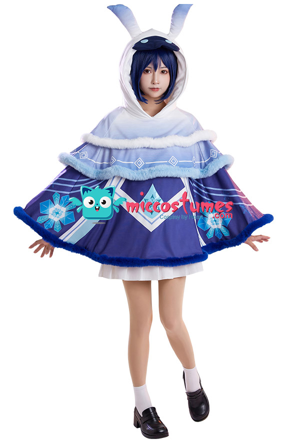 Design Details:Inspired by the Cryo Abyss Mage from Genshin Impact, this hooded cloak is so cute! This cape has three gradient color furry layers that make this cloak even more cute.