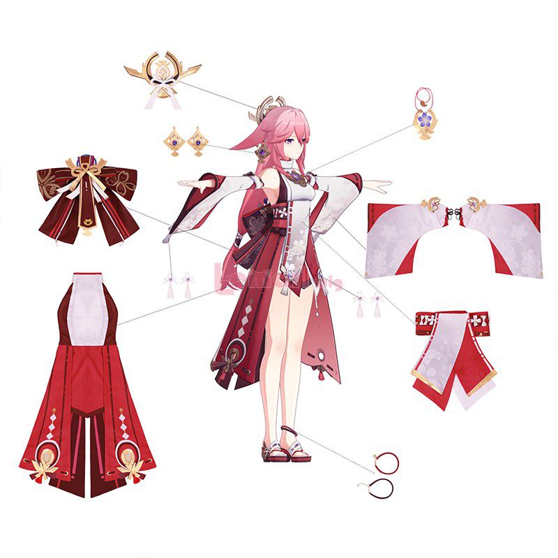 Included: dress, bowtie, waist seal, chest trims, bows, headdress at back, side headdress*2, white pendant*4