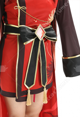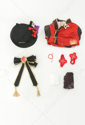 Design Details: This costume is made by digitally printed satin fabric. The hem is provided with lining and the hat accessories pictured are all included. Plus, the costume is provided with golden bead chain decorations.