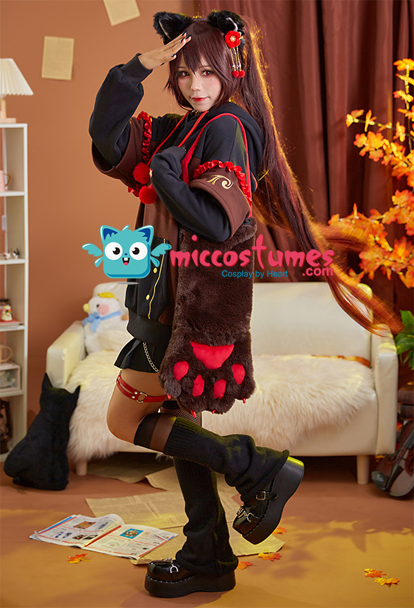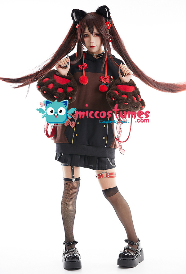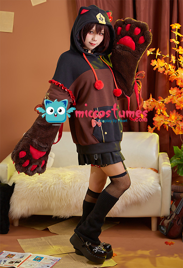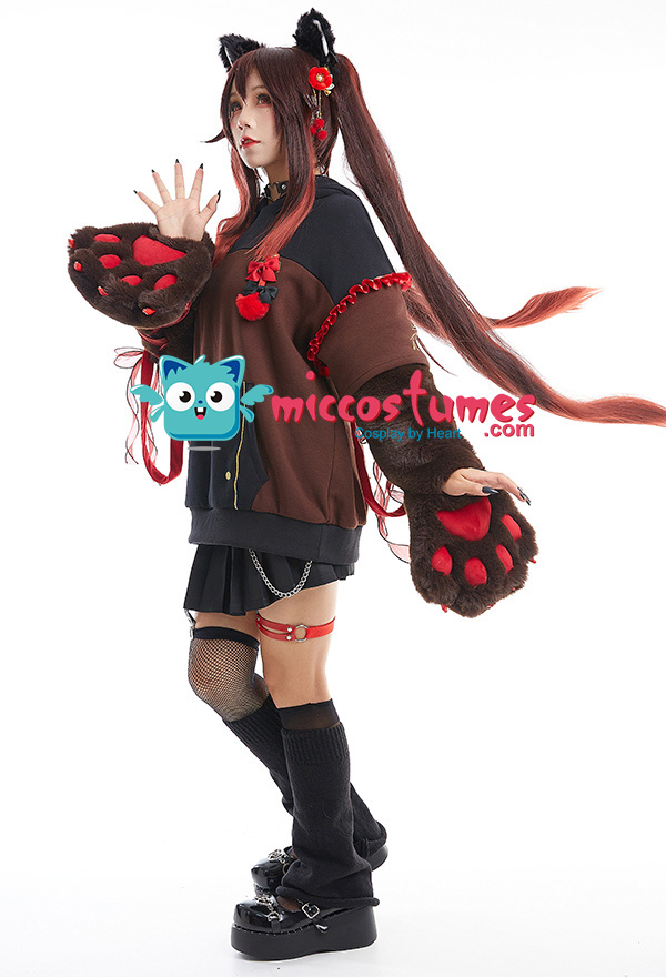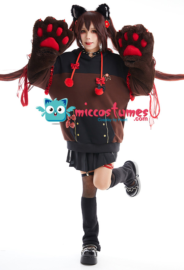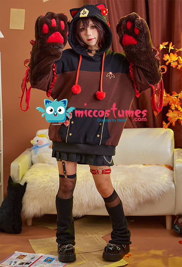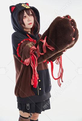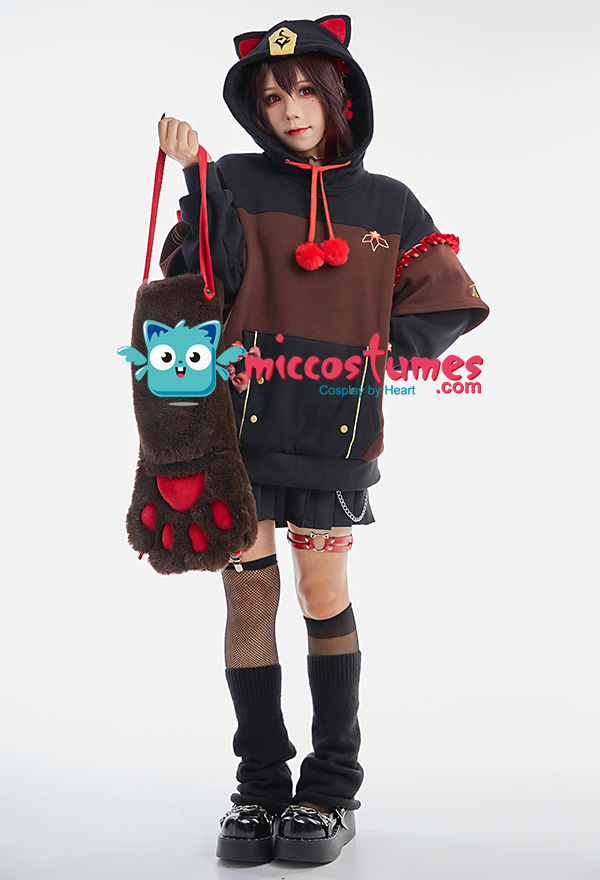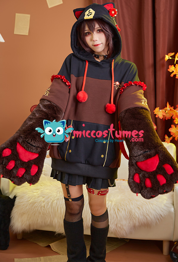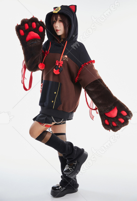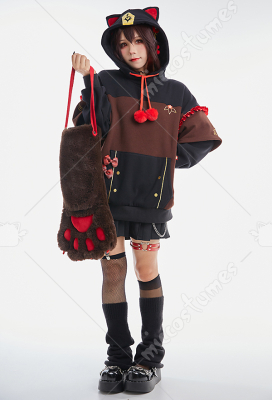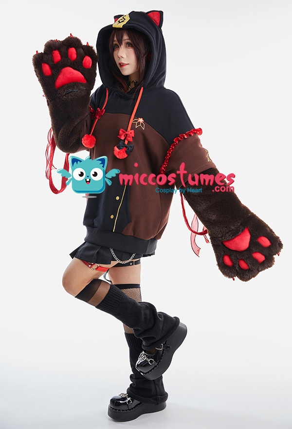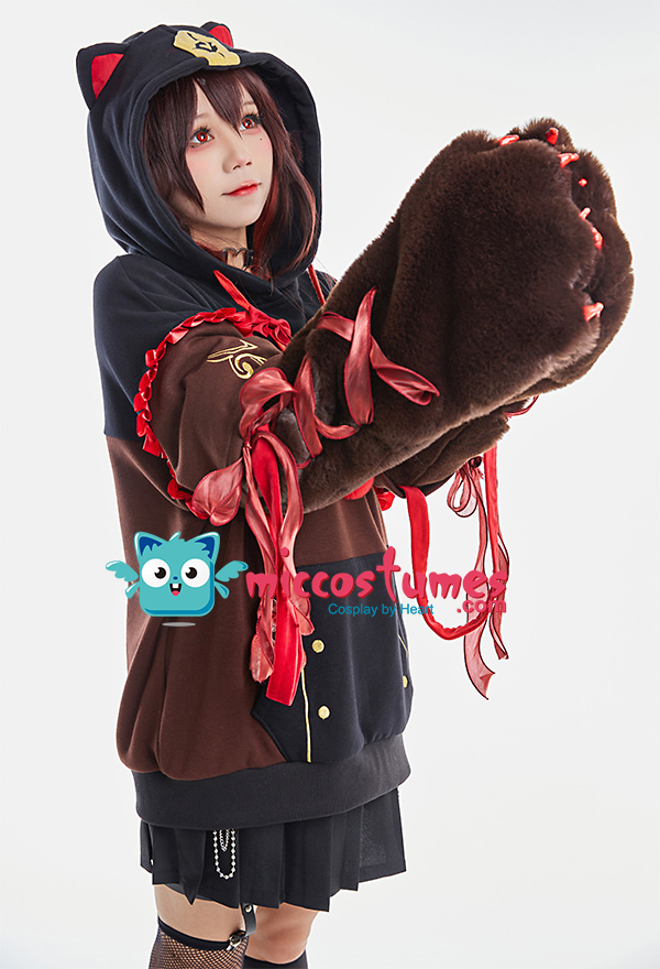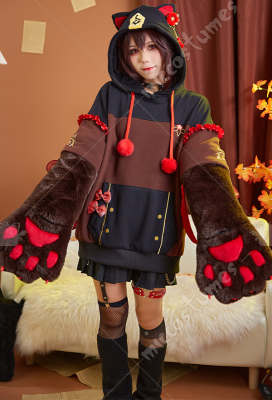 Design Details: 1. Inspiration Source – The hoodie is inspired from Genshin Impact Hu Tao and cat as the prototype. With cute paw gloves, this hoodie looks very beautiful. 2. Special Design – The detachable bag design furry paw is the highlight of this hoodie. The two long-sleeved paw gloves can be detached and used as two bags.  3. Soft & Cozy Materials – The thick hoodie is made of super-soft cozy materials, perfect for winter days. The paw gloves use furry material which is soft and comfortable. 4. Notes – There may be some floating fluff on the surface of the hoodie. We suggest you clean the stains with wet towel as soon as possible once your hoodie is stained. Please do not wash frequently. It cannot be machine washed. Please do not add any chemical products when washing.   For the Paw Gloves Design: 1. The paws are filled with cotton cushions, which look very cute. 2.  Hidden zippers are provided on the sleeves and inside the gloves’ wrists. You can remove the gloves via the zippers on the sleeves or unzip the gloves’ wrists to let your hands free. 3. The strap on the gloves can be a fashion icon and can also be used to sling the bag design gloves over your shoulders. 4. The material used for gloves is super-soft and cozy to keep your hands always in a warm state..
