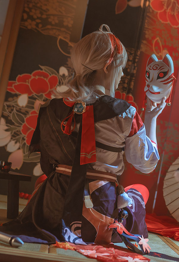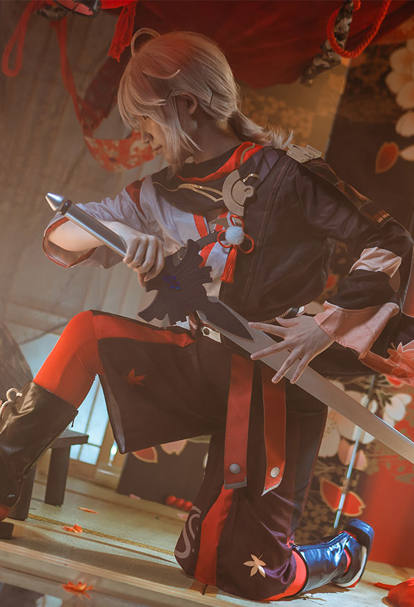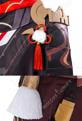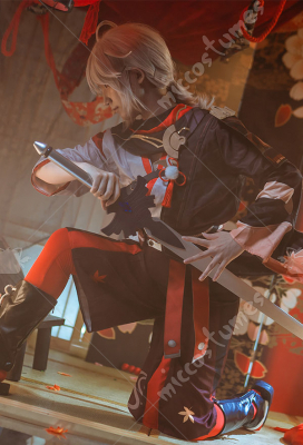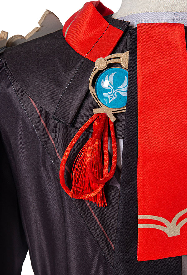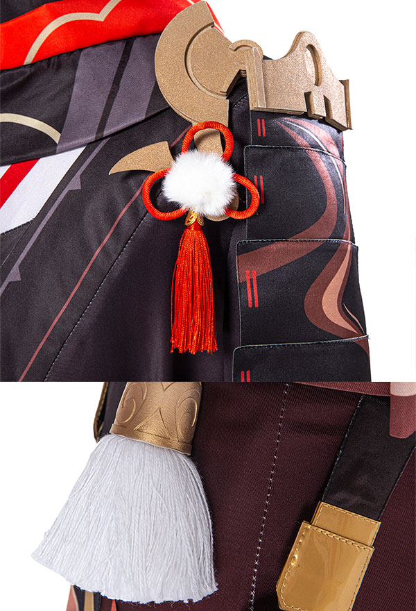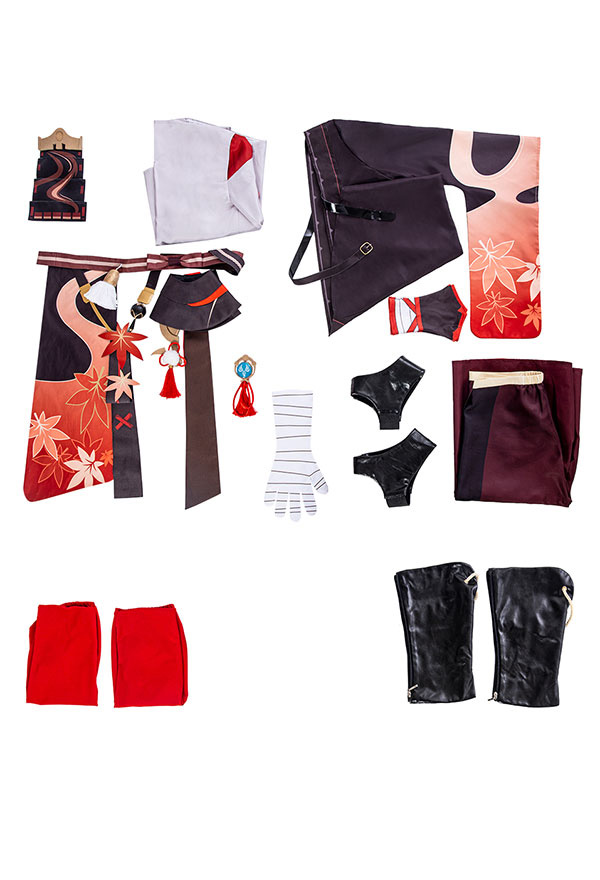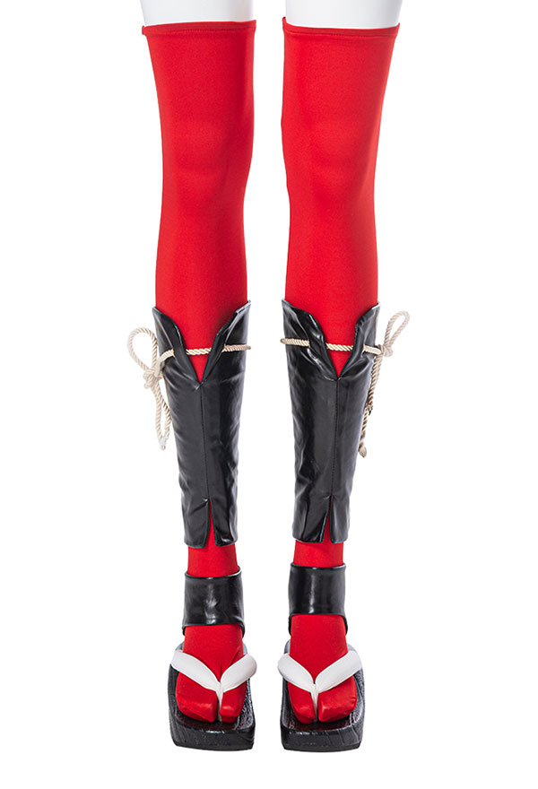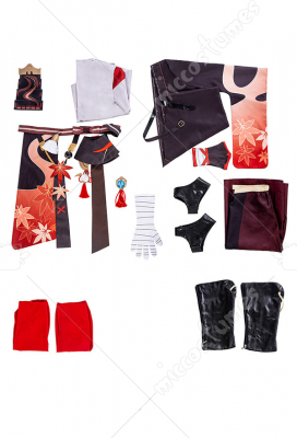 Costume Includes: pants, top, outwear, waist band, collar, shoulder accessories, vision, shoulder armors, gloves*3, stockings*2, legguard*2, foot strap*2. Material: soft cloth, milk fiber, shining leather, matte satin, lining cloth, soft leather, pearl leather, EVA.