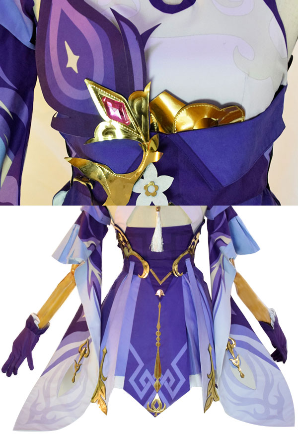 P.s: Due to long-term transportation or storage, this costume may stain easily. Costume Includes: dress, sleeve * 2, glove * 2, headdress * 2, tights, necklace, waist accessories, chest accessories. Material: polyester
