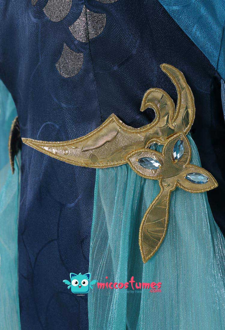 Design Details: Sequins technology is used to increase the pattern details. Embroidered neckline and detailed sleeve hem add opulence. Shell accessories are exquisite.