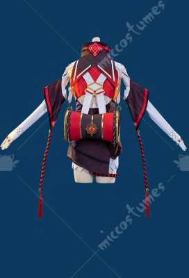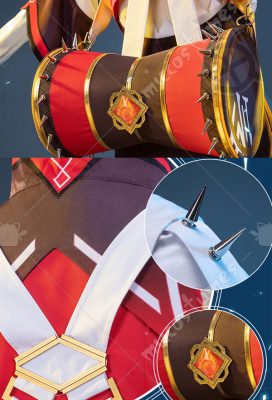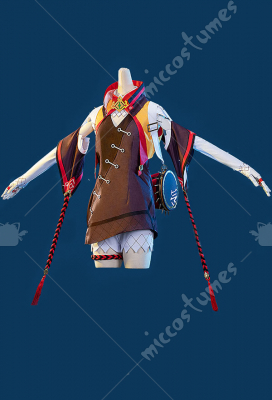 Costume Includes: inner coat, shorts, sleeves*2, shoulder pendant, leg ring, socks*2, backpack, rings*4, ear clip, hair accessories*2, vest. Material: soft fabric. Design Details: The satchel is very delicate and meticulously restored. Printed design on the shoulder. Accessories and props are highly restored.