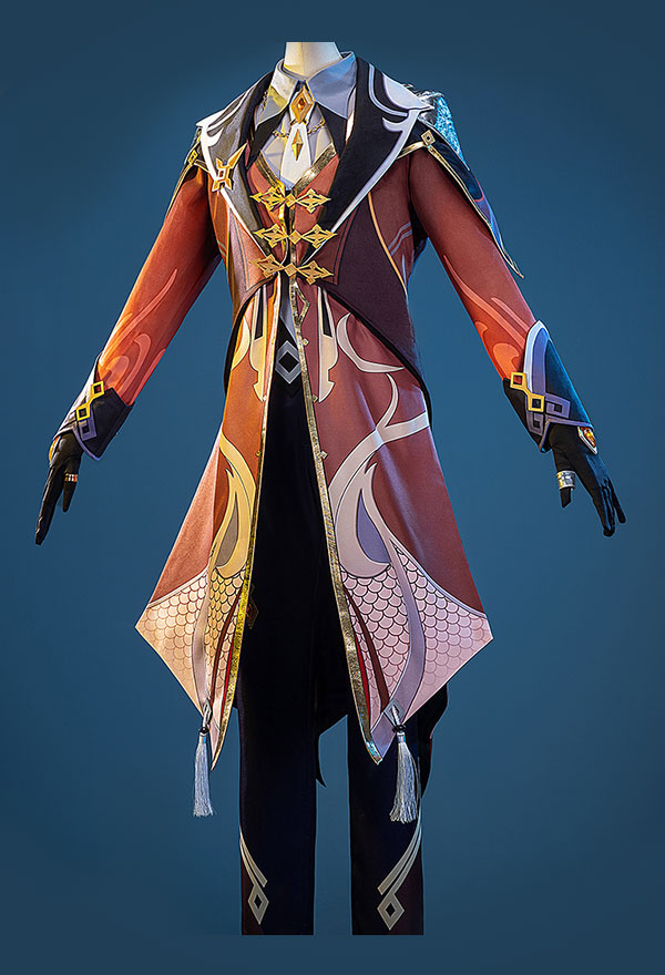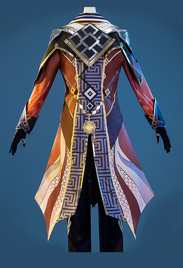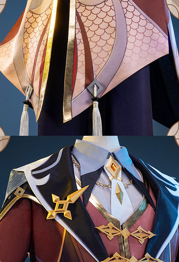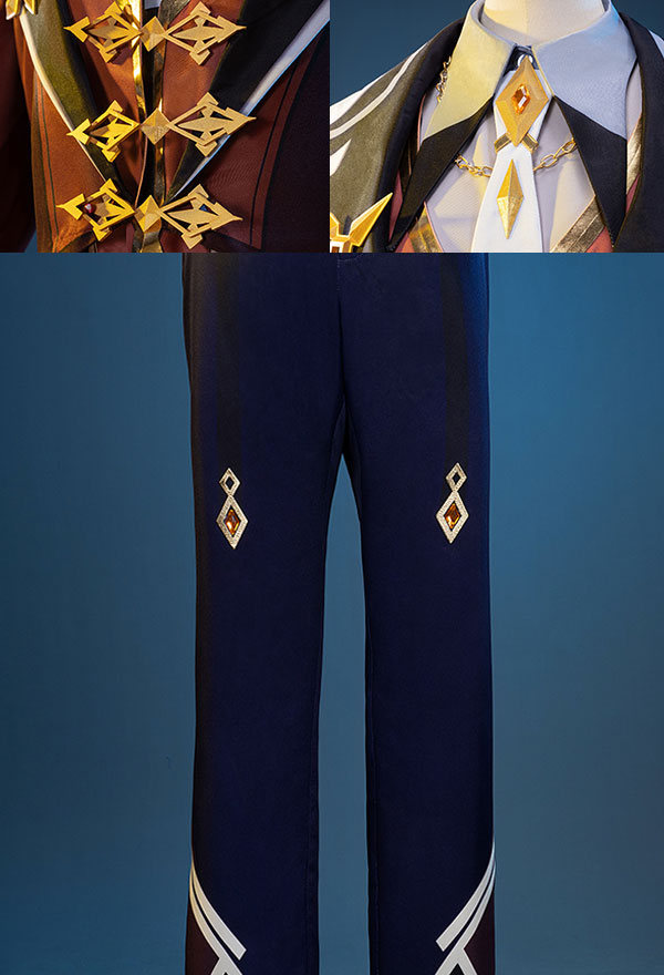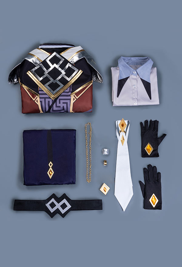 Costume Includes: coat, shirt, pants, necklace, rings, crystal, tie, gloves, belt. Material: uniform cloth. Design Details: Acrylic decoration is handmade. The three-dimensional accessories are all 3D modeling and printing. The body has a large area of high-precision printing, which is very delicate.