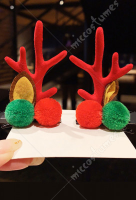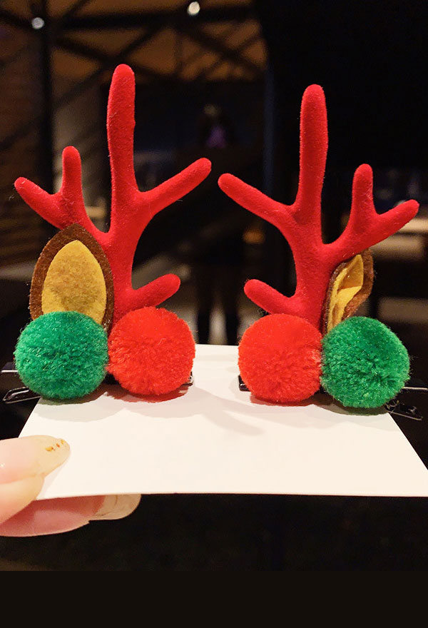 Girls Christmas Acrylic Red Reindeer Antler Santa Xmas Hair Clips Cosplay Accessory with Red and Green Velvet Ball for Christmas