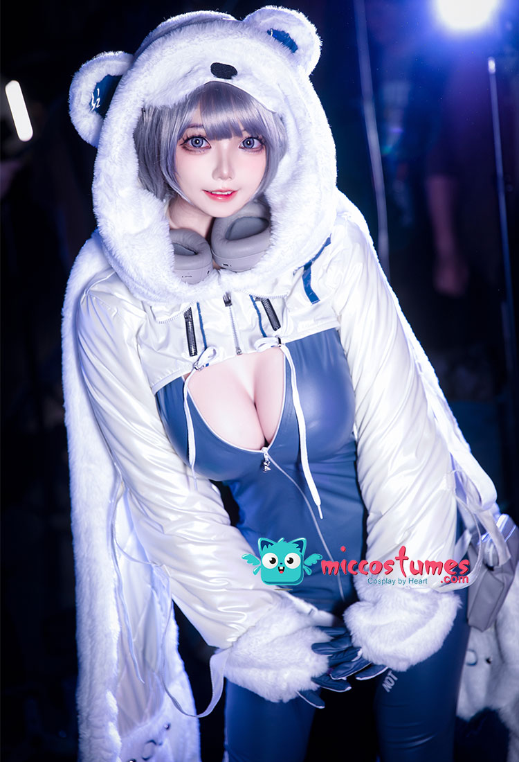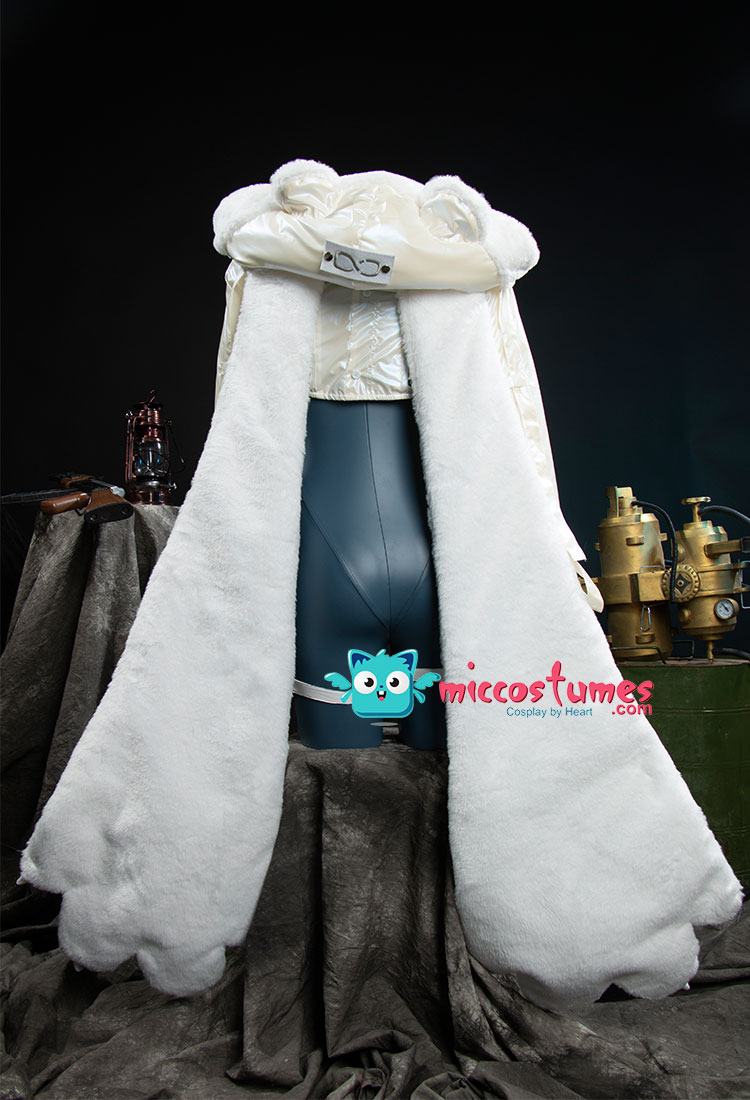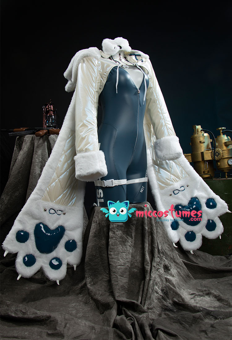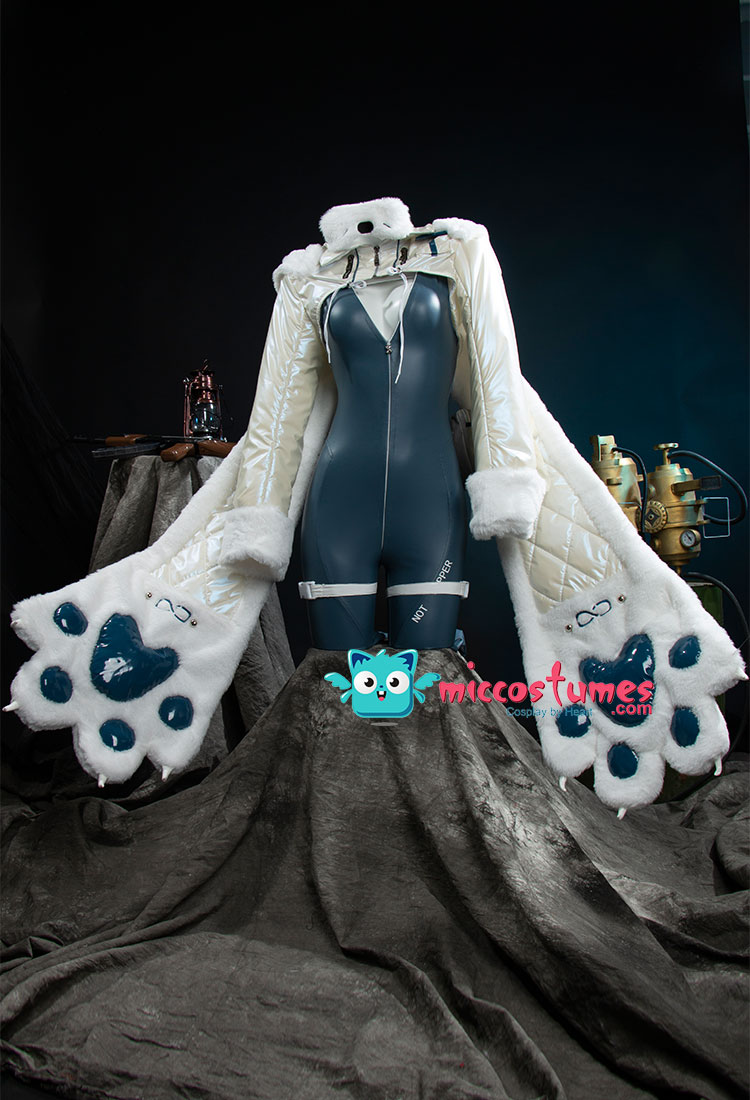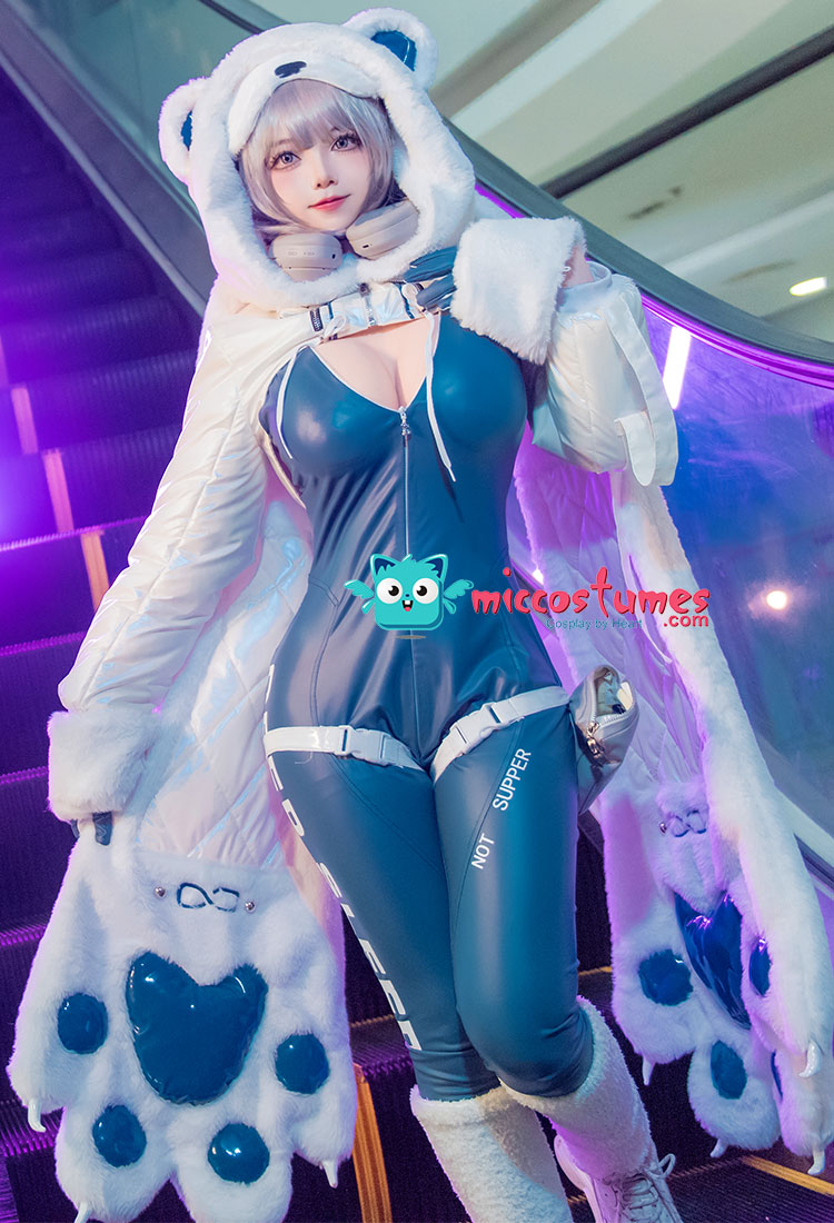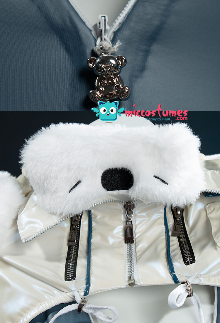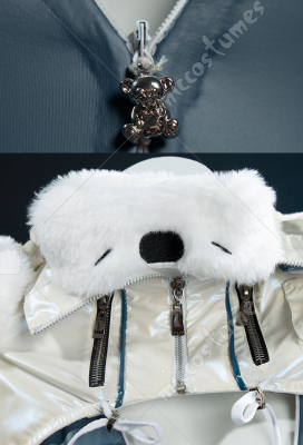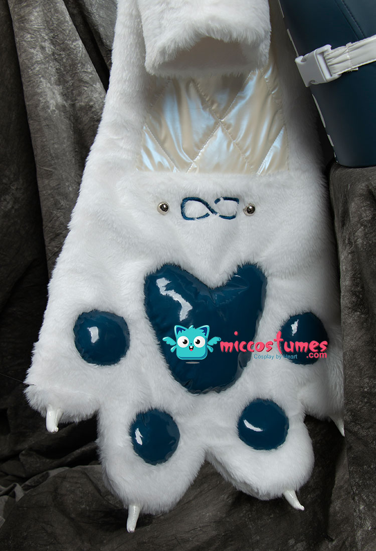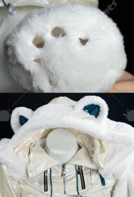 Design Details: The jacket fabric has a magic blue light effect, and the arms are filled with cotton. The arm strap design cuff terry can be replaced with bare fingers or bare hands. We have designed zippers for the bodysuit. The zipper head is in the shape of a bear. The fixed position of the elastic leg straps can be adjusted freely. There are oversized plush bear paws and a hat, the hat can be connected with the coat, and the paws are three-dimensional and cute.