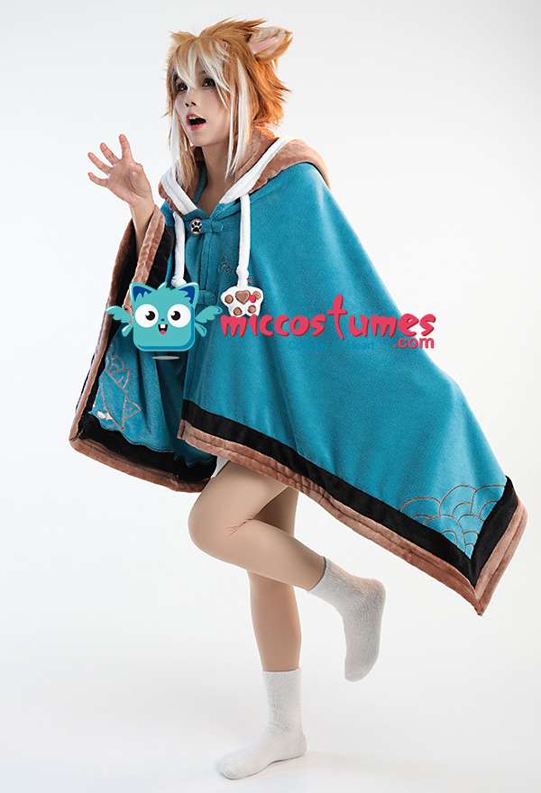 Design Details: The hat rope has two buckles that can be detached. Buttons at the back collar allow the cape to be folded into a throw pillow.