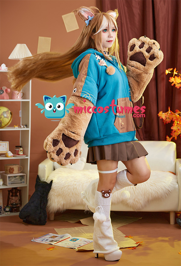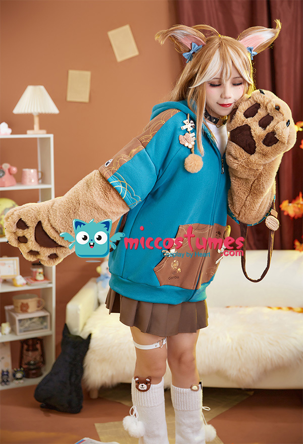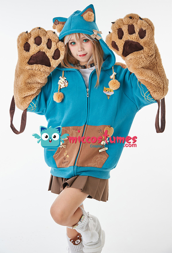 Design Details: 1. Inspiration Source – The hoodie is inspired from Genshin Impact Gorou with dog as the prototype. With the ear hood, the cute shiba inu embroidery and the furry paw gloves, it looks cute and cool. Comes with a bowknot brooch. 2. Special Design – The detachable bag design furry paw is the highlight of this hoodie. The two long-sleeved paw gloves can be detached and used as two bags. 3. Soft & Cozy Materials – The main hoodie is made of high-quality sweatshirt fabric, which is breathable, light and comfortable. It’s specially suited for autumn and spring. The paw gloves are made of furry material, touching soft and comfortable. 4. Notes – There may be some floating fluff on the surface of the hoodie. We suggest you clean the stains with wet towel as soon as possible once your hoodie is stained. Please do not wash frequently. It cannot be machine washed. Please do not add any chemical products when washing. For the Paw Gloves Design: 1. The paws are filled with cotton cushions and provided with heart designs to offer a cute and real look. 2. Hidden zippers are provided on the sleeves and inside the gloves’ wrists. You can remove the gloves via the zippers on the sleeves or unzip the gloves’ wrists to let your hands free. 3. The strap on the gloves can be a fashion icon and can also be used to sling the bag design gloves over your shoulders. 4. The material used for gloves is super-soft and cozy to keep your hands always in a warm state.