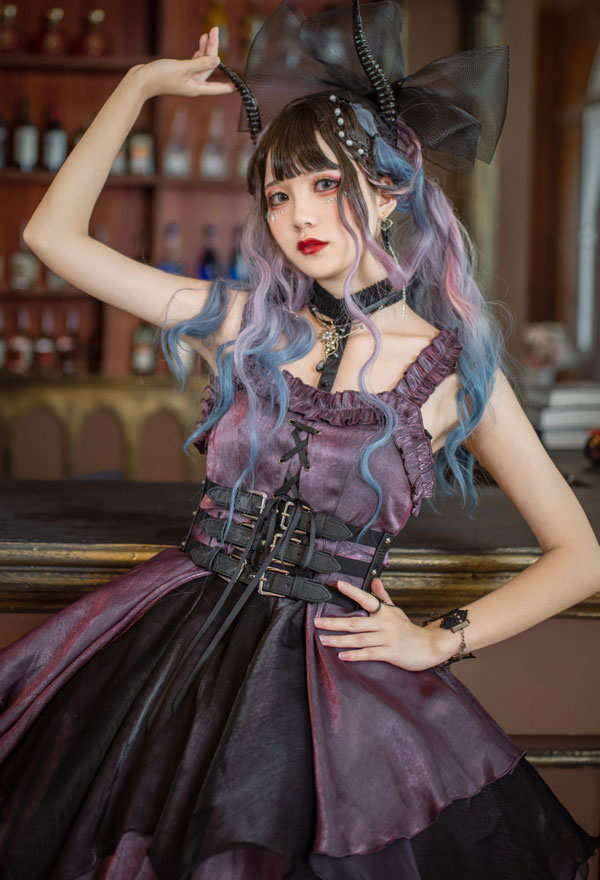 The costume includes dress, choker, ribbon. It is made of polyester.