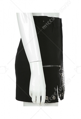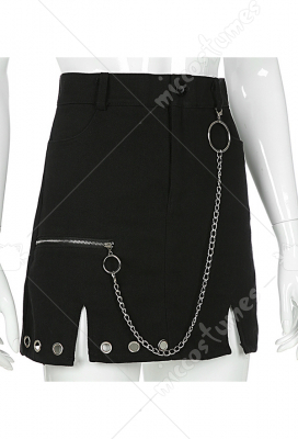 Be the first to review “Gothic Punk Dark Style Women Hem Split Short Pencil Skirt High Waist Fitted Bodycon Skirt with Metal Chain Ornament”