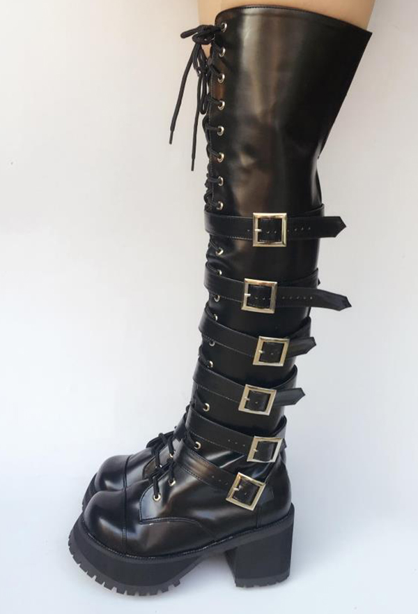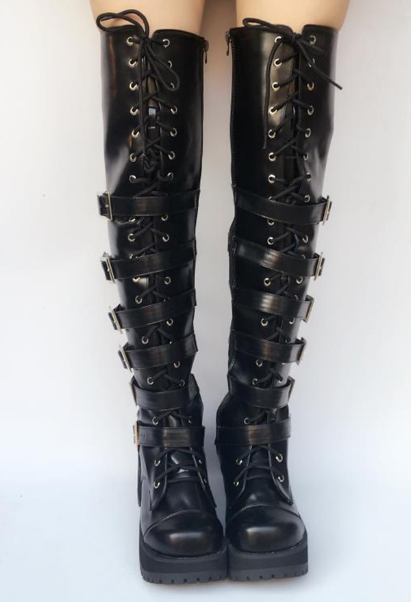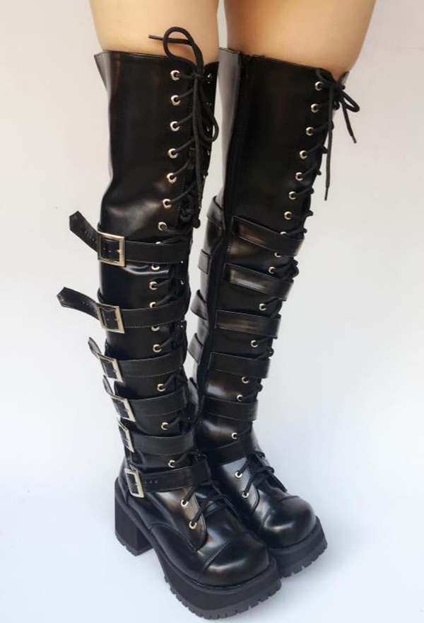 Be the first to review “Gothic Punk Faux Leather Martin Boots Side Zipper Over the Knee Boots Women Lace Up Platform Shoes Thick High Heel Chunky Buckled Boots Footwear” Cancel reply
