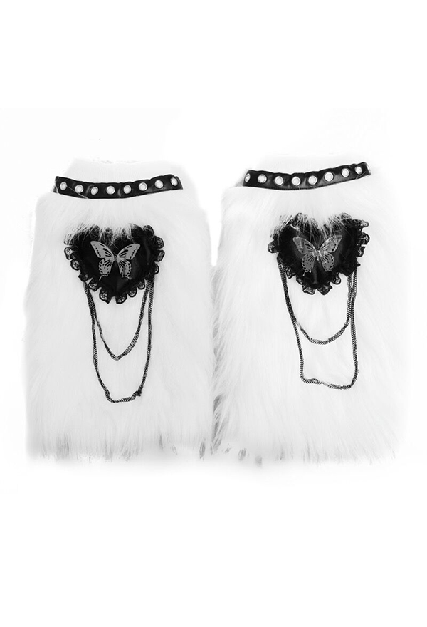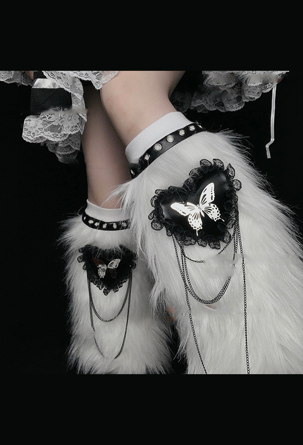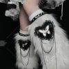Gothic Punk Harajuku Style Girls Women Plush Faux Fur Leg Warmers Lace Heart Butterfly Pendant Boots Cuff for Winter Autumn