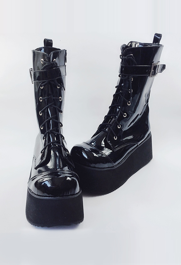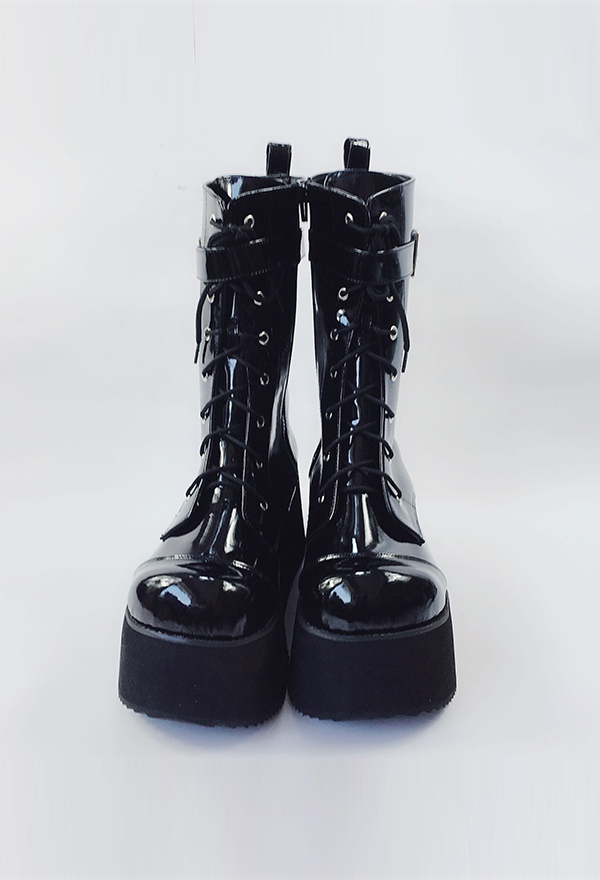 Be the first to review “Gothic Punk Round Toe Lace Up Buckled Martin Boots Faux Leather Japanese Style Thick Platform Women Shoes Chunky Mid Length Boots Footwear” Cancel reply