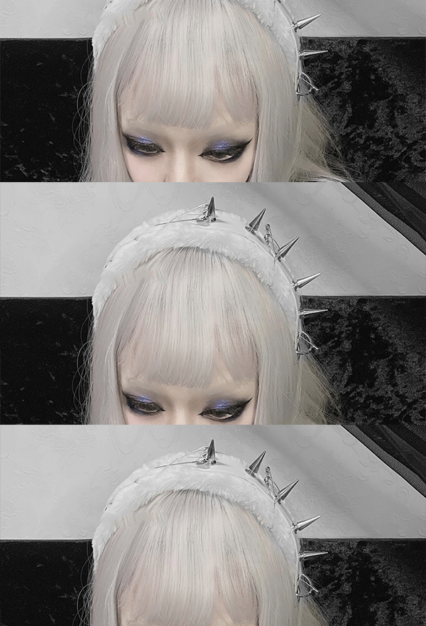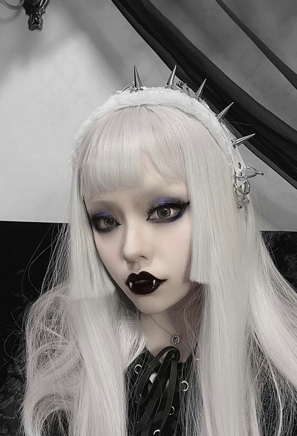 Gothic Punk Style Women Girls Hairband Headband Cute Fluffy Headdress Metal Rivets Ornament Headwear Hair Accessory