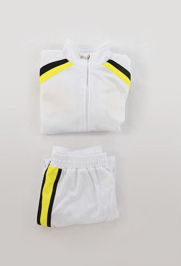 The costume includes jacket, pants and knee pads. It is made of polyester.