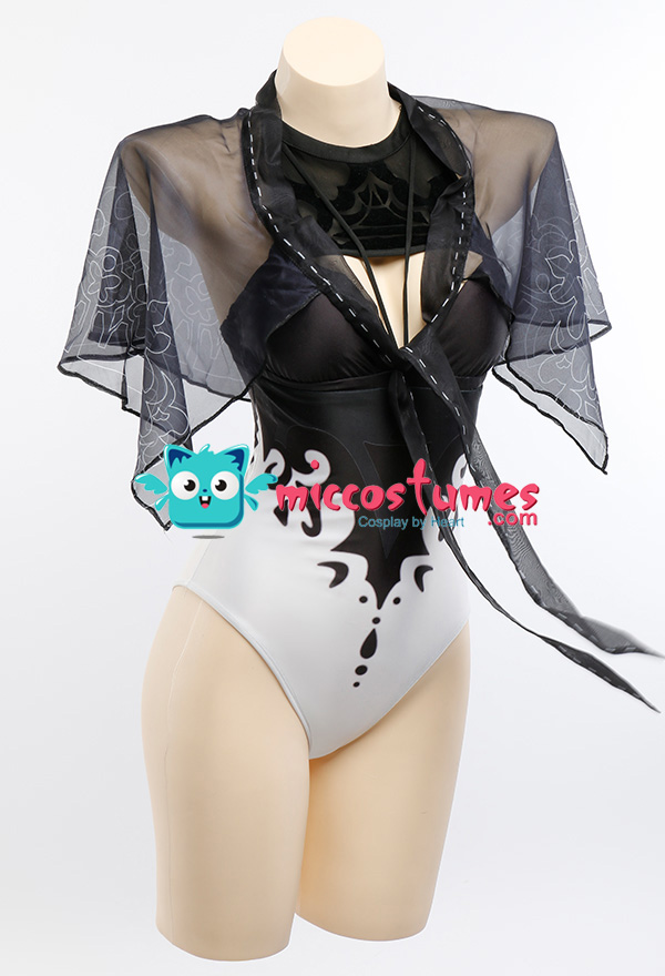Costume Includes: swimsuit, veil dress. Material: spandex, chiffon. Design Details: The outfit is one of our original swimsuits. The veil dress is designed as transparent form and conveys you feeling of drape. And if you wanna dress more sexy, you can also wear the swimsuit only. Besides, the straps on the front part of the chest can be a good decoration. Attention: Swimwear products have exclusive tags (on the crotch of the clothing). After the tag is removed, the product cannot be returned or exchanged. Swimwear products are personal clothing and cannot be returned or exchanged after use Swimwear products cannot be returned after use.