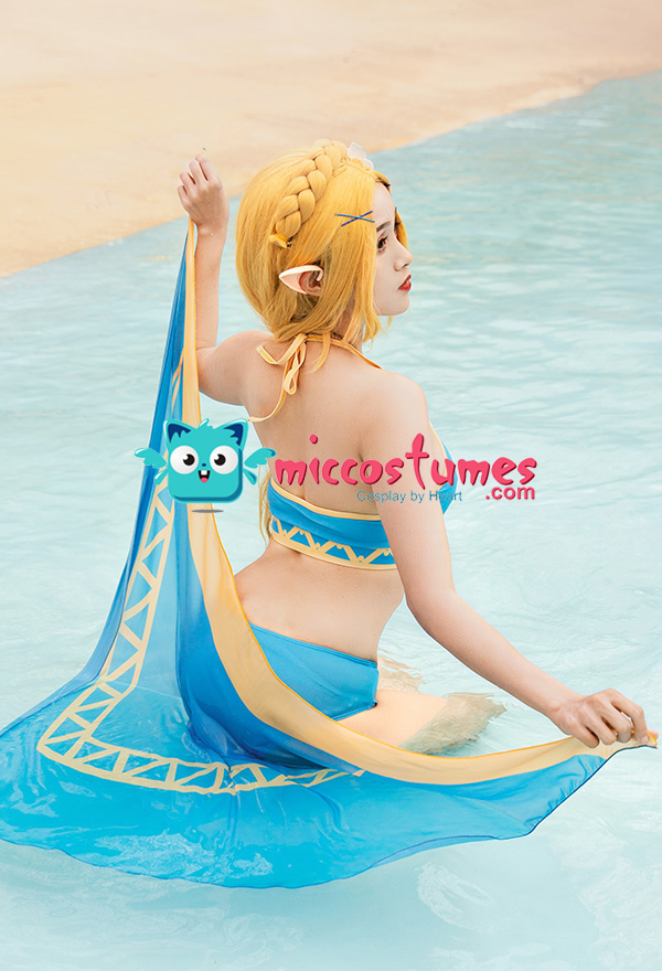 Costume Includes: top, shorts, veil dress. Material: spandex, chiffon. Design Details: The swimsuit is designed as fine polyester swimming fabric pattern, which is largely identical with the princess Zelda in the game. The swimsuit is designed as sportswear style, with the veil dress covered. This outfit adopts swwimsuit fabric and can be worn under water and sea. Attention: Swimwear products have exclusive tags (on the crotch of the clothing). After the tag is removed, the product cannot be returned or exchanged. Swimwear products are personal clothing and cannot be returned or exchanged after use Swimwear products cannot be returned after use.