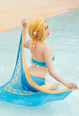 Costume Includes: top, shorts, veil dress. Material: spandex, chiffon. Design Details: The swimsuit is designed as fine polyester swimming fabric pattern, which is largely identical with the princess Zelda in the game. The swimsuit is designed as sportswear style, with the veil dress covered. This outfit adopts swwimsuit fabric and can be worn under water and sea. Attention: Swimwear products have exclusive tags (on the crotch of the clothing). After the tag is removed, the product cannot be returned or exchanged. Swimwear products are personal clothing and cannot be returned or exchanged after use Swimwear products cannot be returned after use.