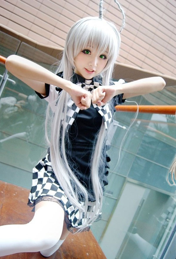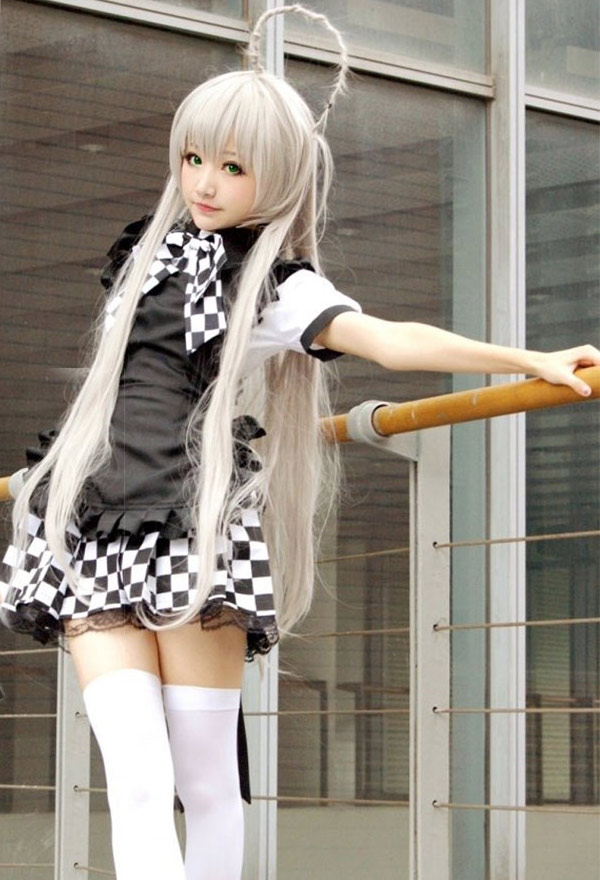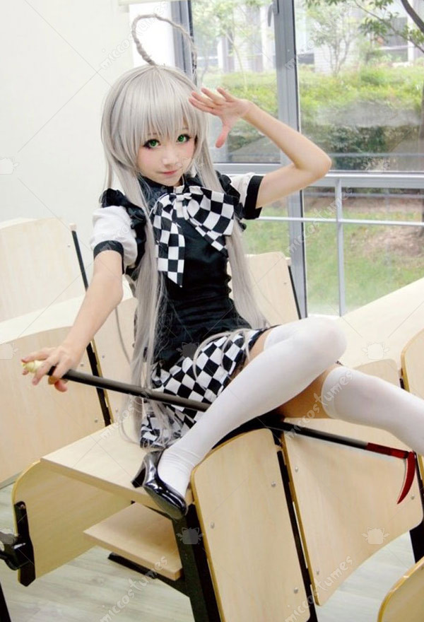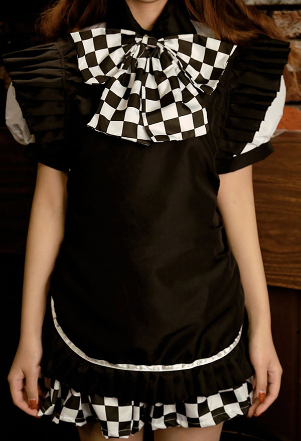 This costume includes top, skirt, apron, bow. It ismade of uniform cloth.